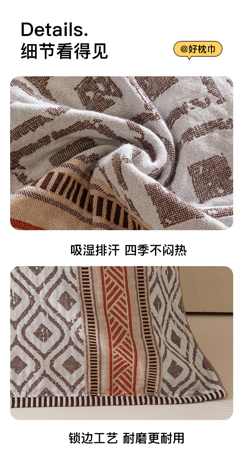 爱港家纺 2025新款全棉巴恩风纱布枕巾 隔热 耐脏,防滑 朝歌