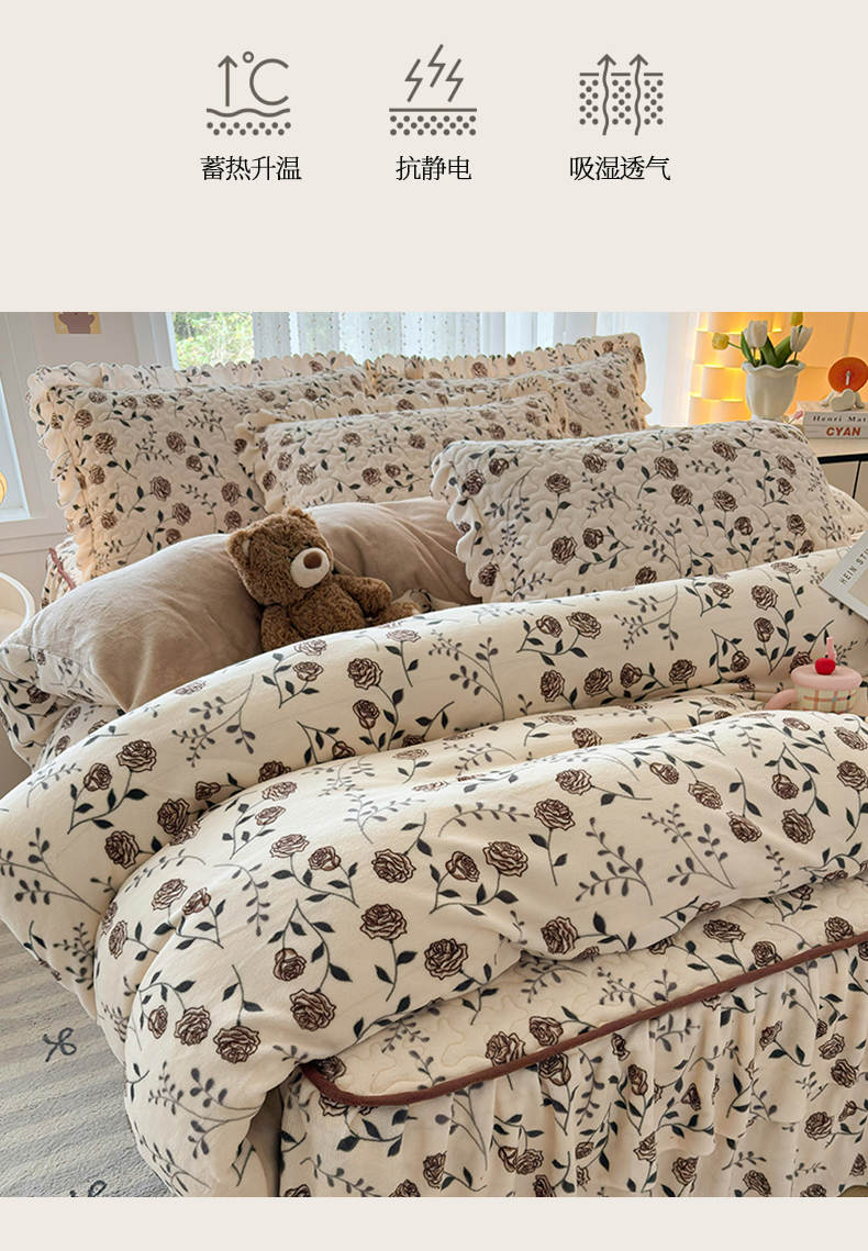 当前位置: 91家纺网 > 商品网购 > 床品套件 > 四件套 > 牛奶绒四件套 > 铠畅家纺 2025新款牛奶绒夹棉床盖床裙四件套 国色天香
