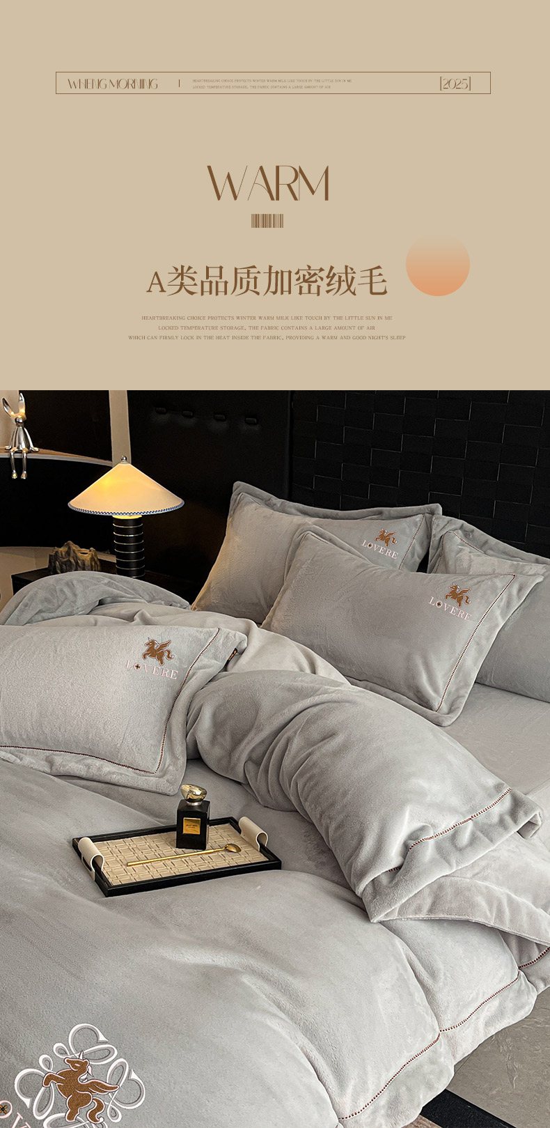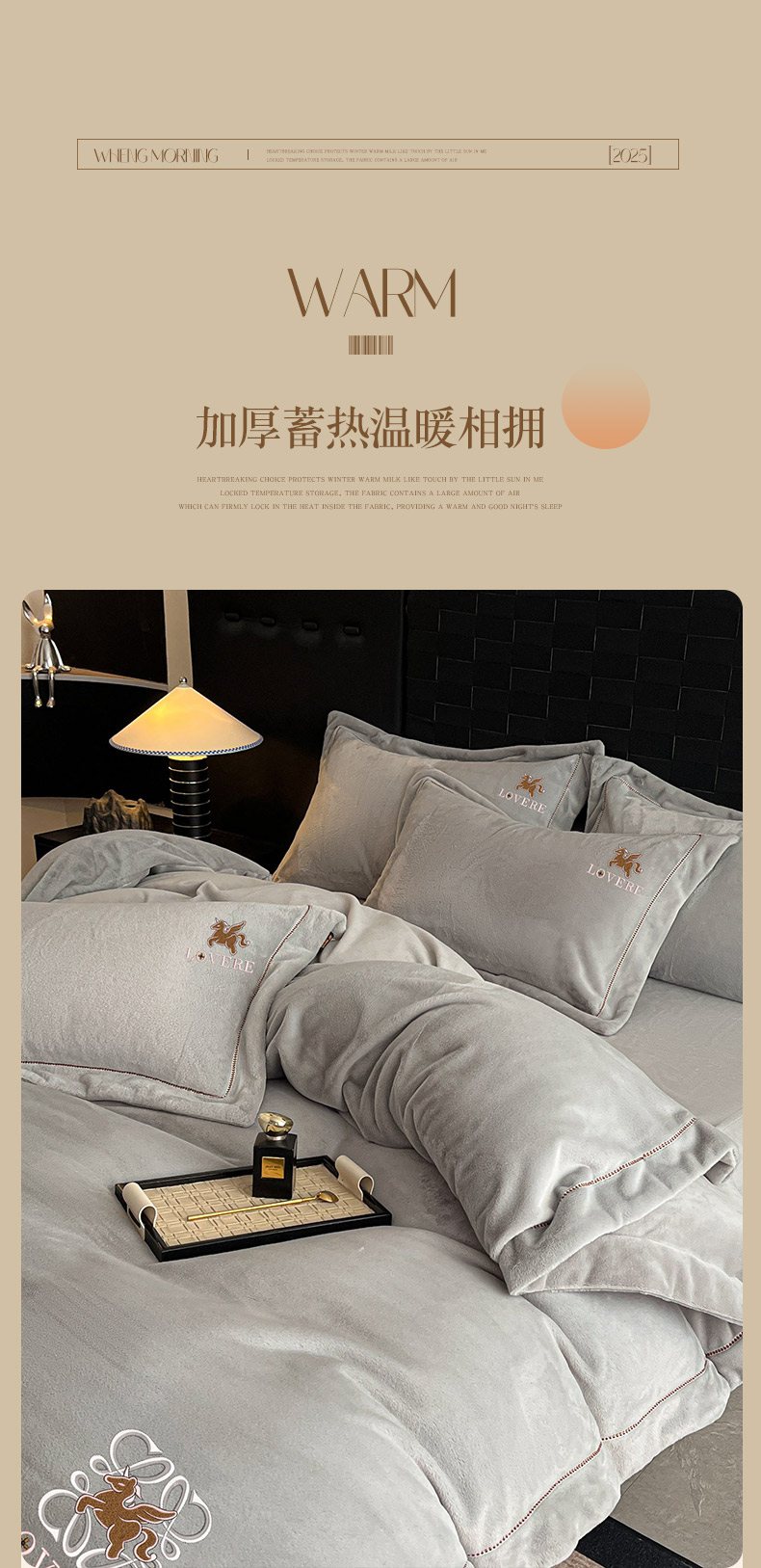 (总)库里梦家纺 2025网红直播热款230克全消光工艺绣花牛奶绒四件套,飞马-卡其,飞马-银灰,飞马-米色,飞马-杏仁黄,飞马-桃花粉,飞马-海洋蓝,飞马-薄荷绿