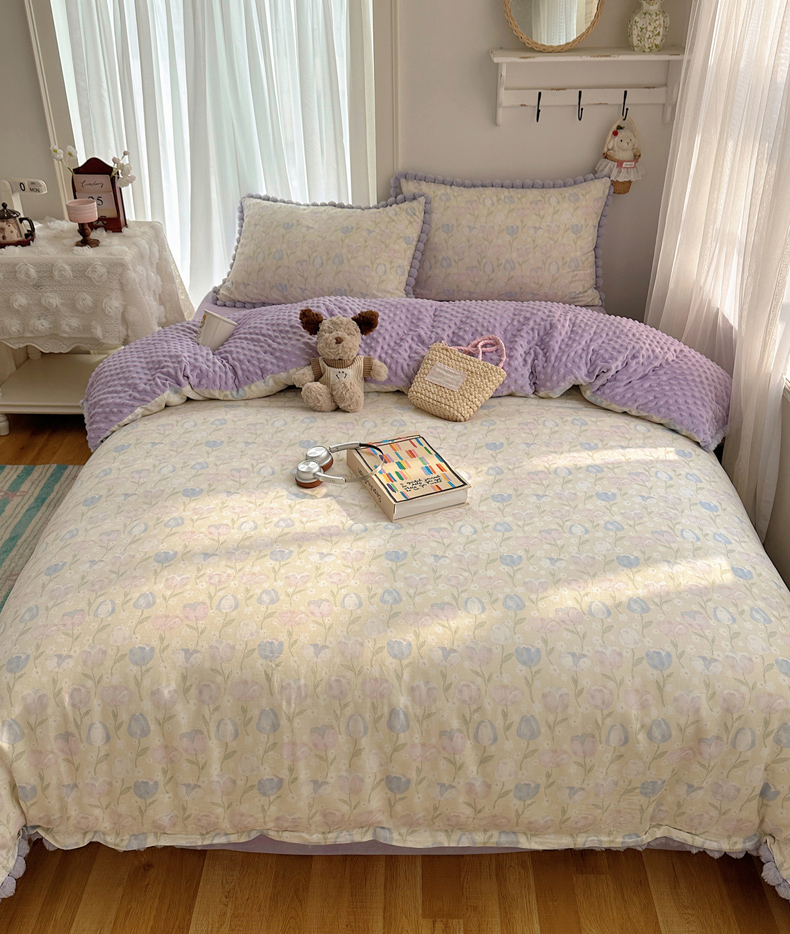 Sweet dreams甜梦 2025新款双层纱豆豆绒棉加绒四件套 郁金花海