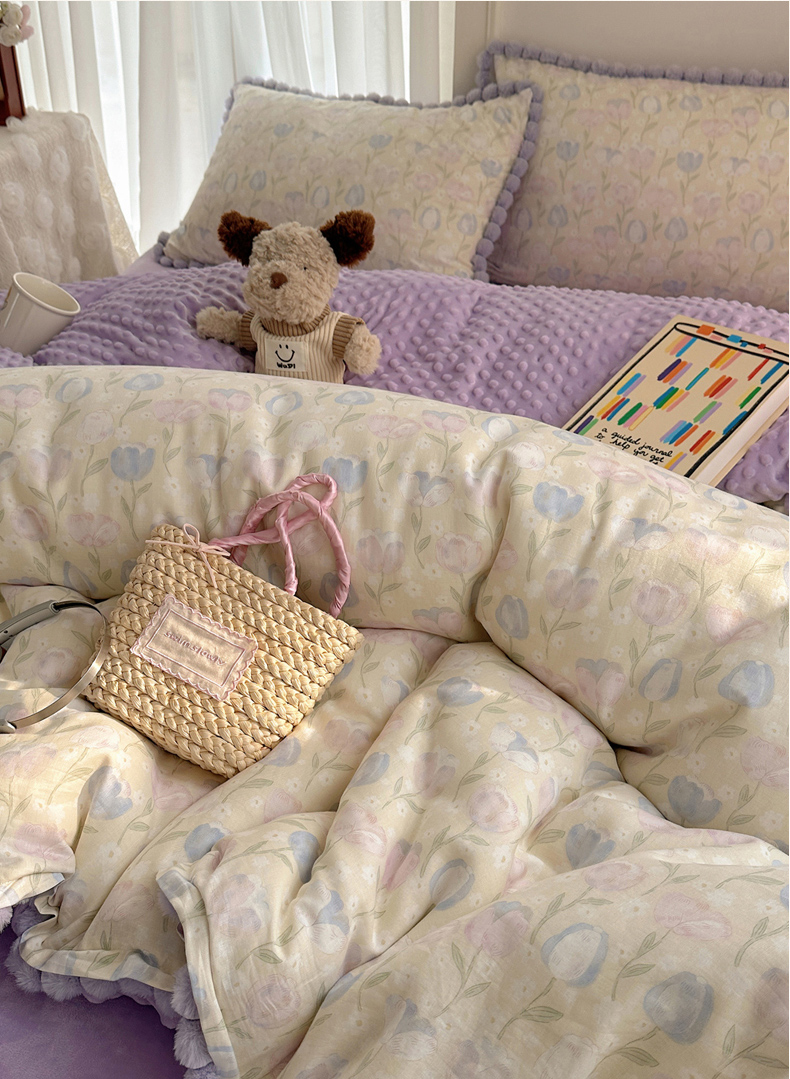 商品名称:Sweet dreams甜梦 2025新款双层纱豆豆绒棉加绒四件套 郁金花海