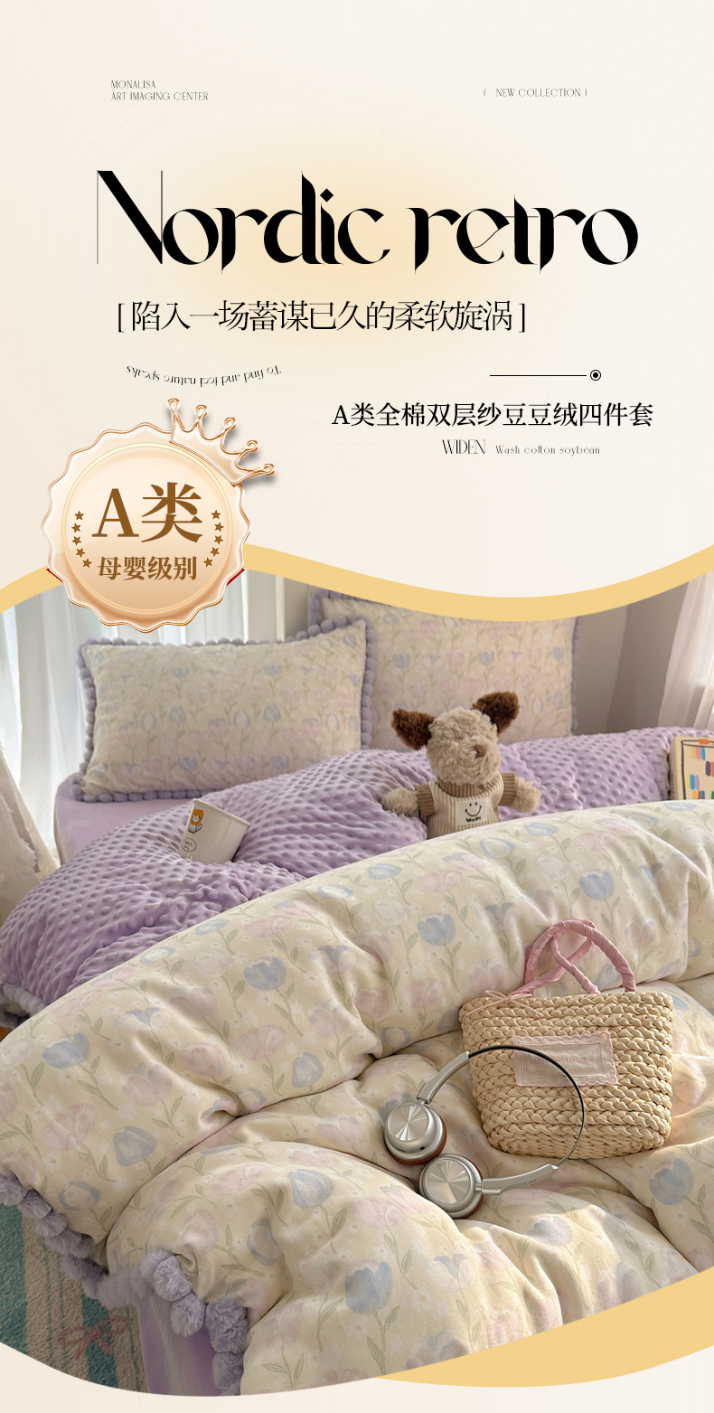 (总) Sweet dreams甜梦 2025新款A类双层纱豆豆绒棉加绒四件套,花梦时,童趣王国,温婉话语,郁金花海