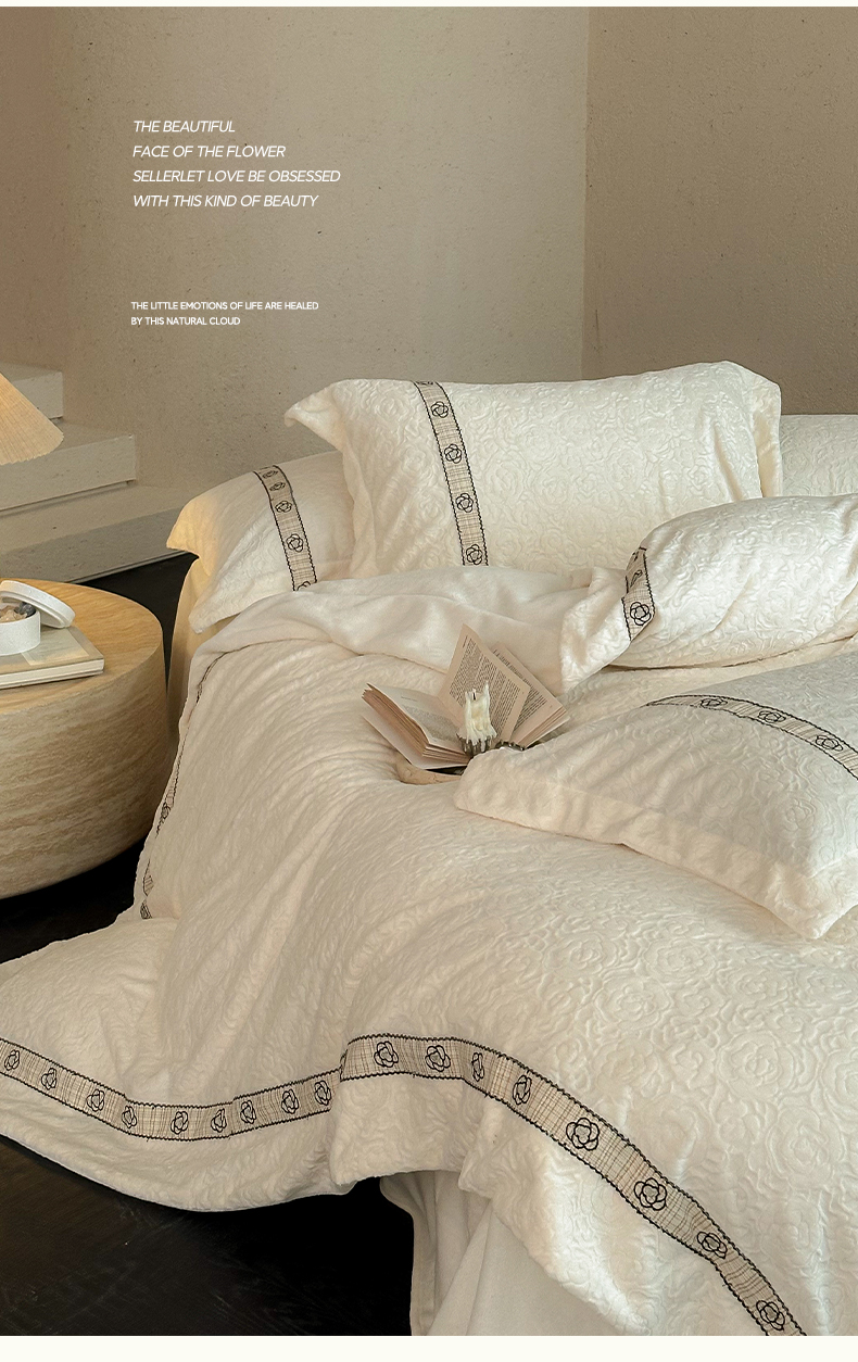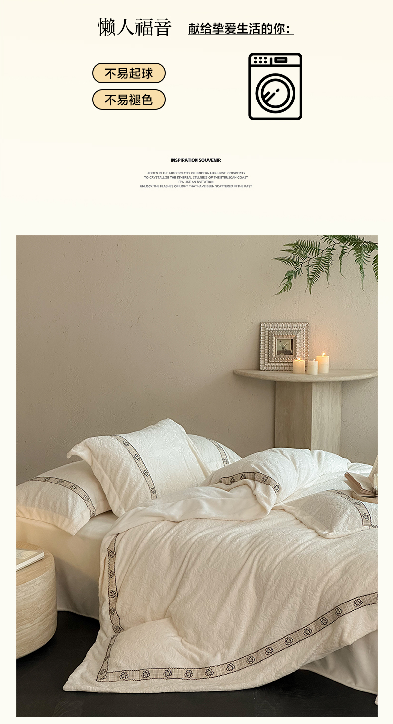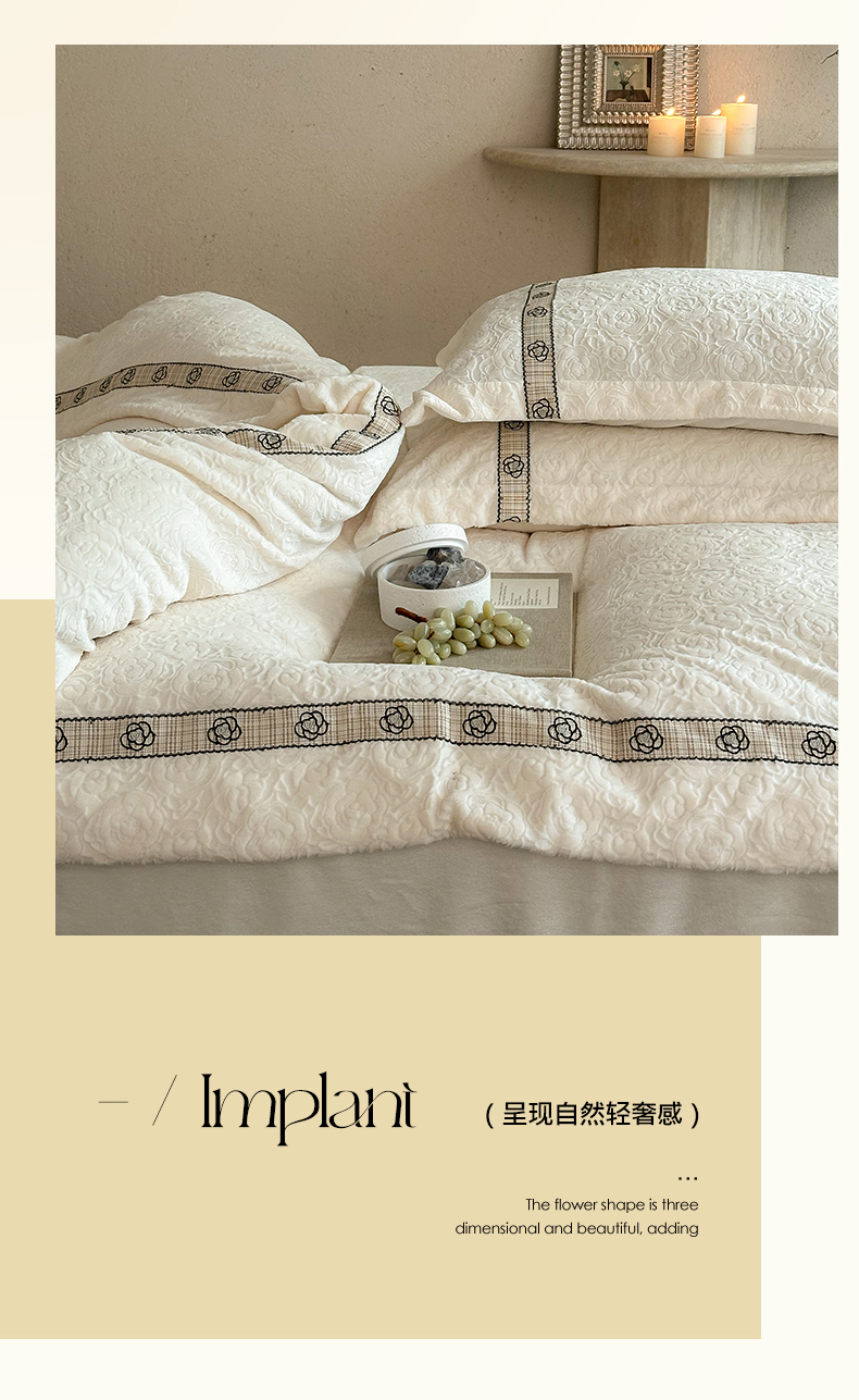 商品名称:凯儿家纺 2025新款全消光牛奶绒法式公主风花边工艺款四件套-赫本 赫本-米