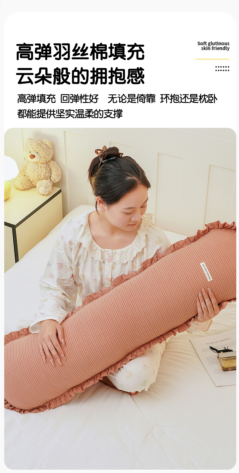 蔻眠 全棉花边款长抱枕枕夹腿抱枕长枕芯孕妇抱枕枕头 主图