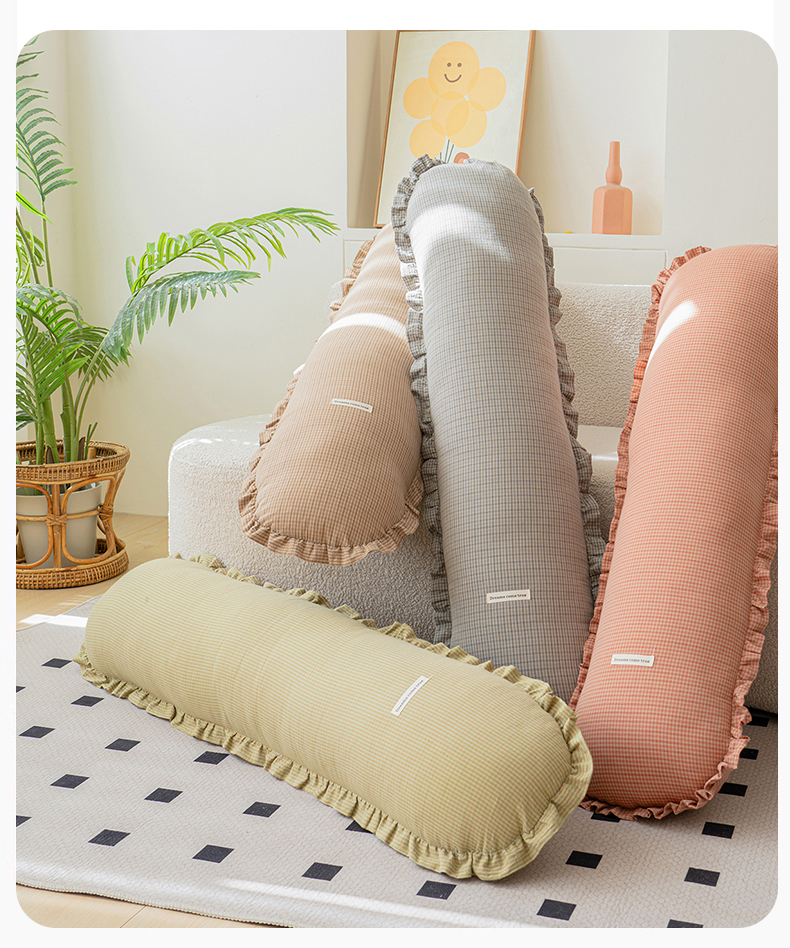 (总)蔻眠 花边款多功能全棉月亮长抱枕夹腿抱枕芯月亮枕头,主图,花边款月亮-驼格,花边款月亮-橙格,花边款月亮-灰格,花边款月亮-绿格
