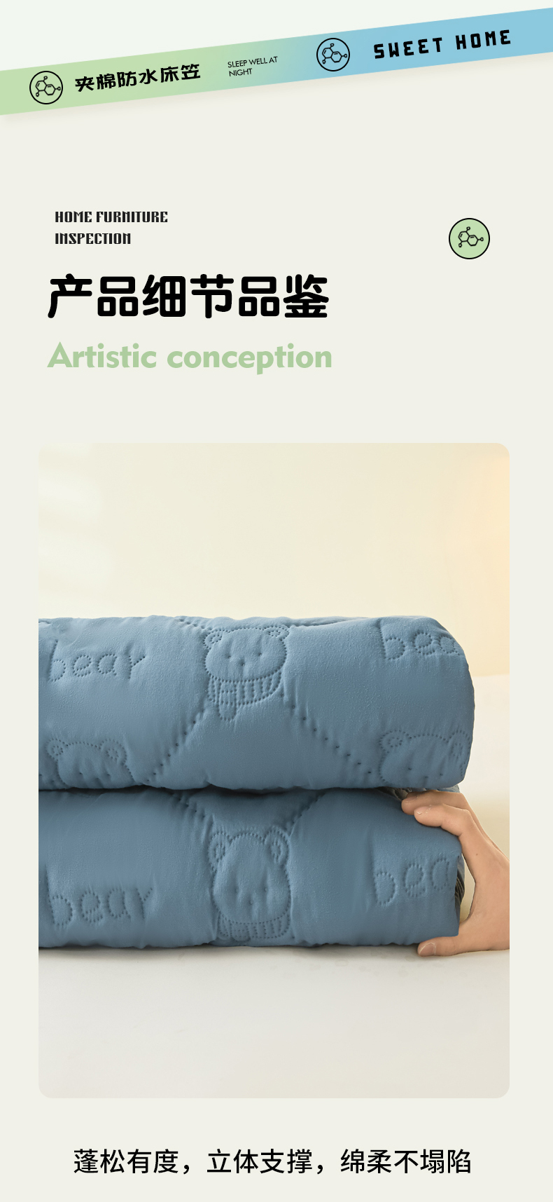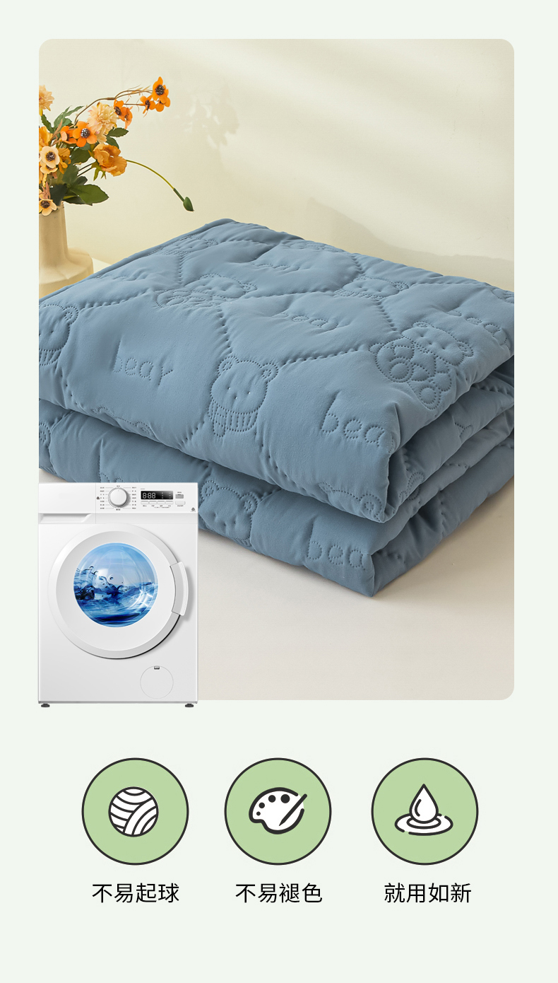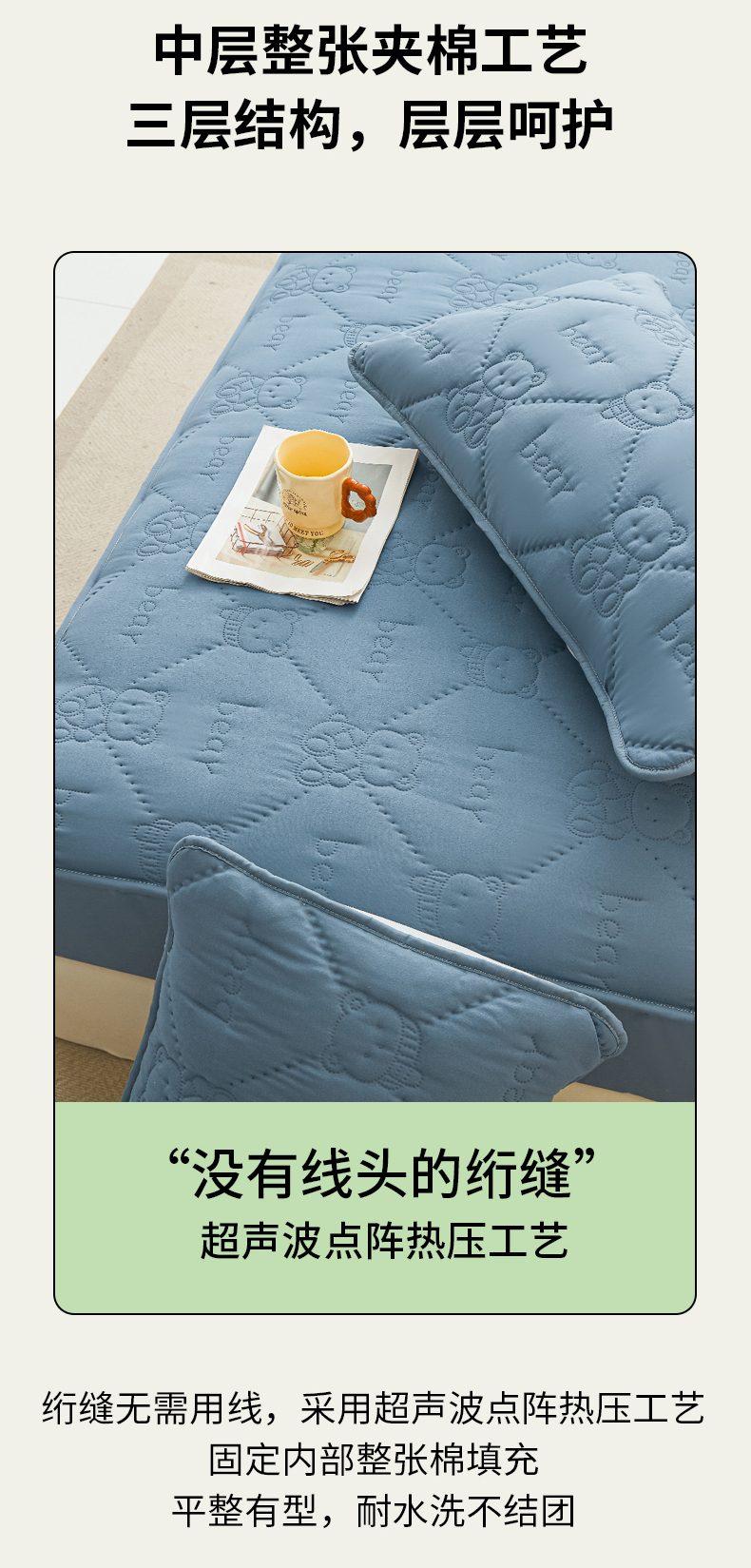 • 91家纺网 家纺一手货源 找家纺 LIFE.丽芙 2025新款磨毛单件超声波小熊夹棉防水床笠三件套 小熊防水夹棉床笠-宾利蓝