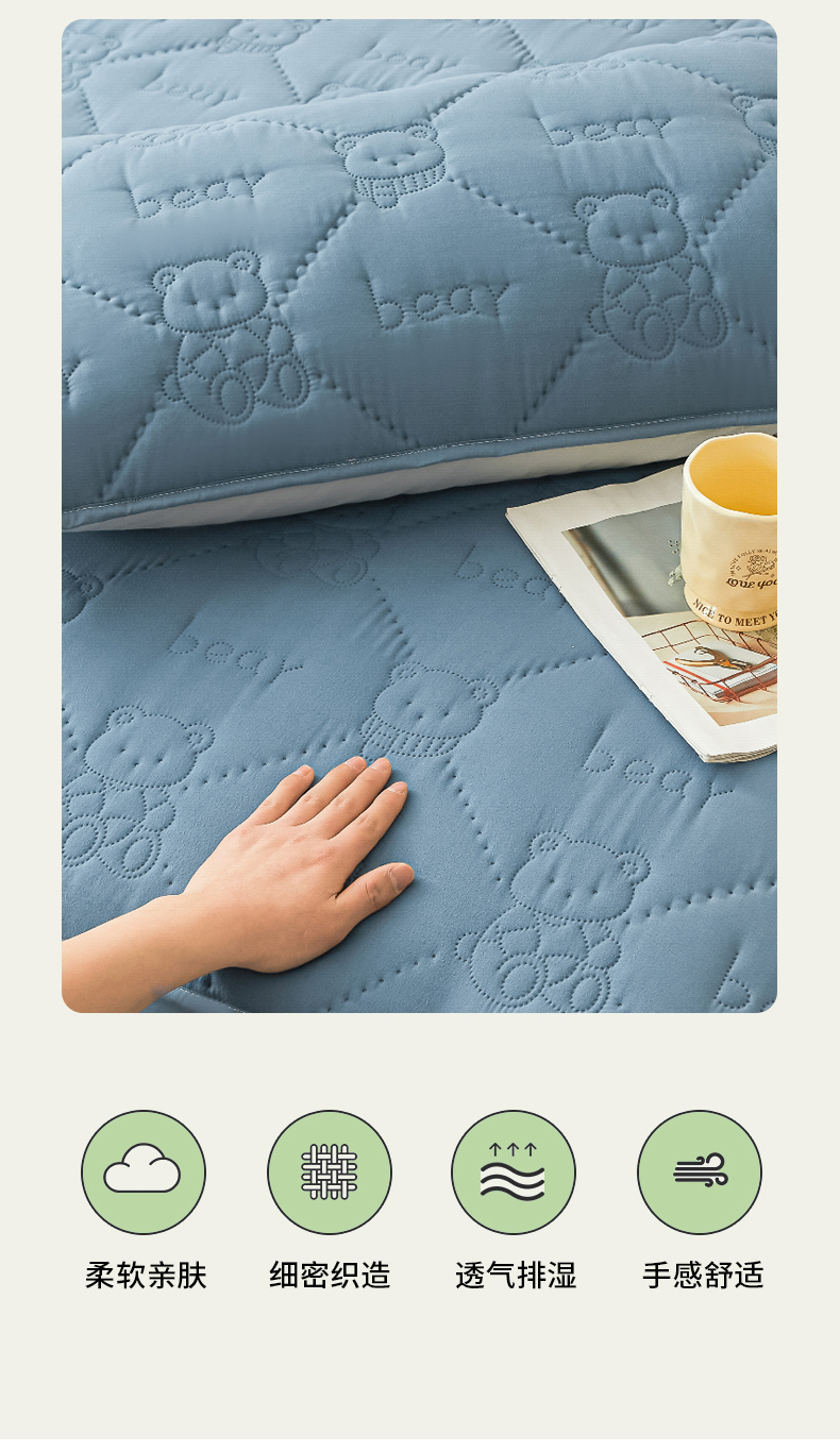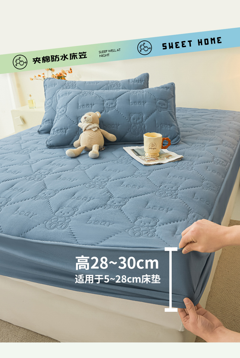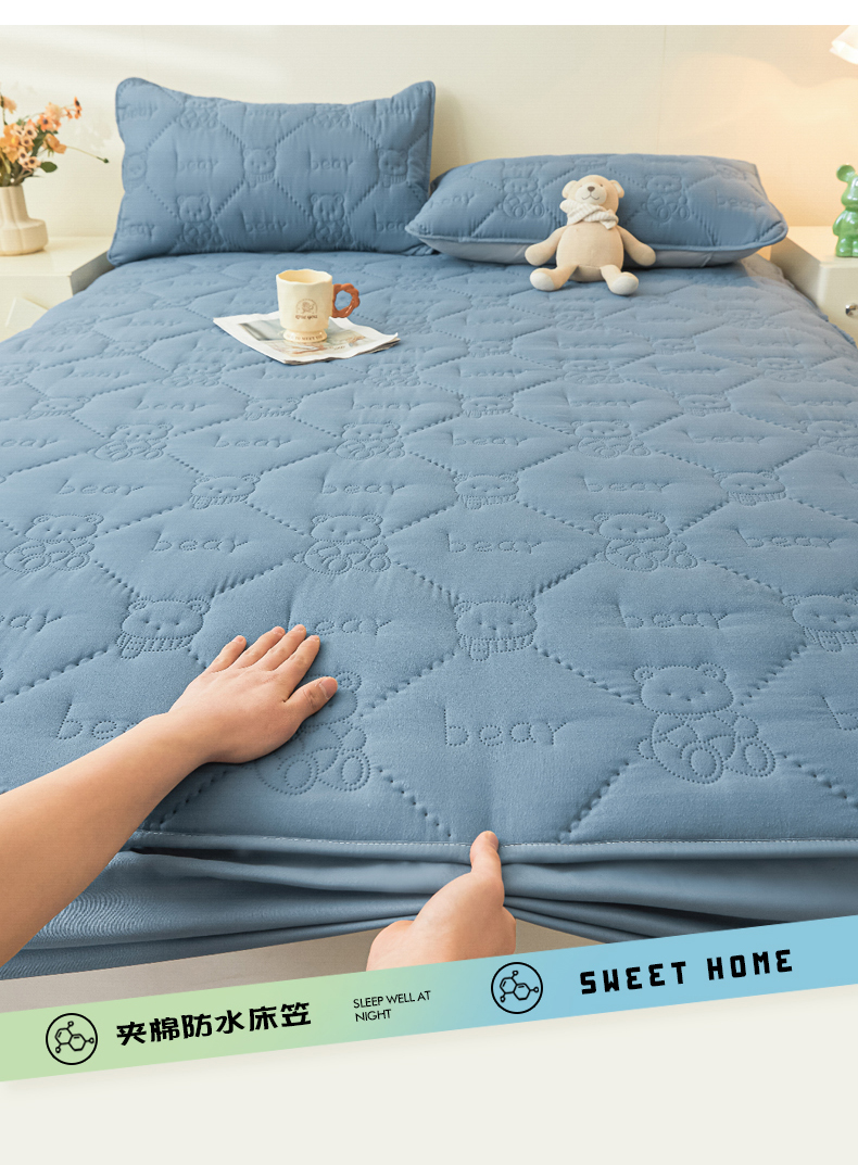 当前位置: 91家纺网 > 商品网购 > 床上用品 > 床笠 > LIFE.丽芙 2025新款磨毛单件超声波小熊夹棉防水床笠三件套 小熊防水夹棉床笠-宾利蓝