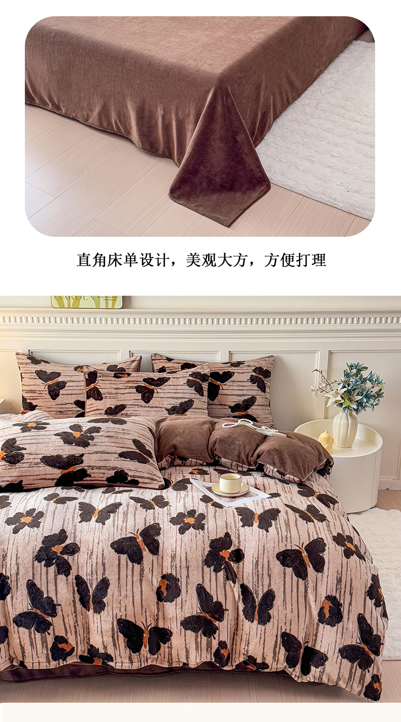 (总)仟岸家纺 2025新款牛奶绒印花四件套,豹纹咖,草莓喵,蝴蝶,蝴蝶结爱心,花妖白,花妖黑,花枝绿,玫瑰灰,玫瑰咖,顽皮狗,小点点
