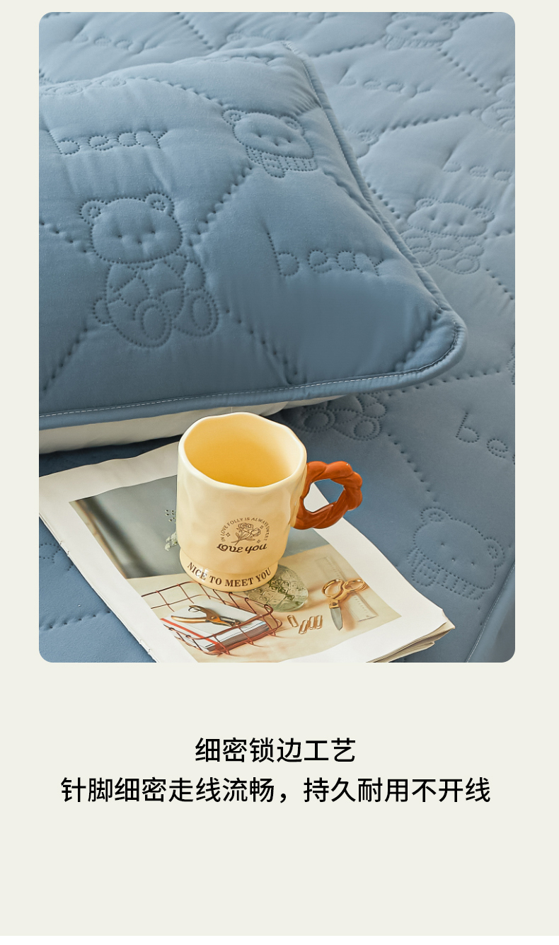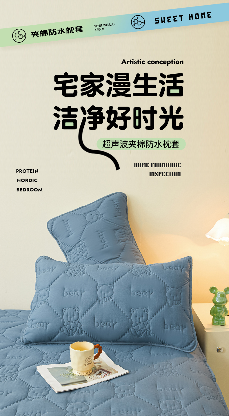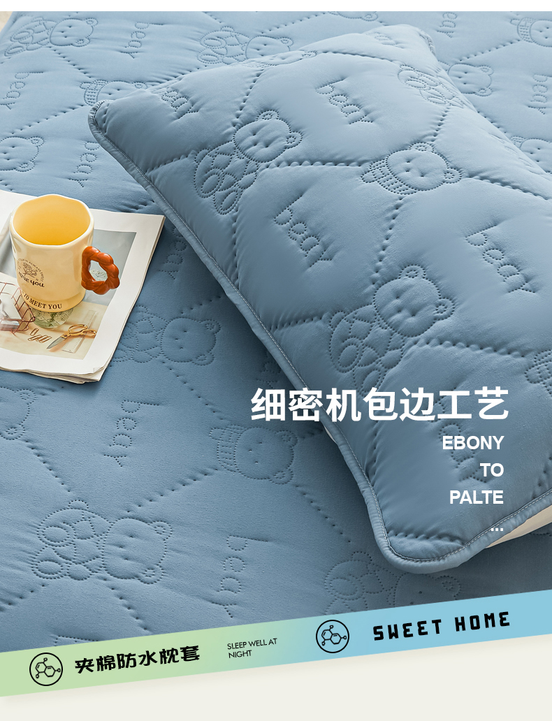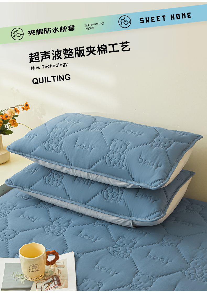 • 91家纺网 家纺一手货源 找家纺 LIFE.丽芙 2025新款磨毛超声波夹棉防水枕套机包边款 小熊防水夹棉枕套-宾利蓝