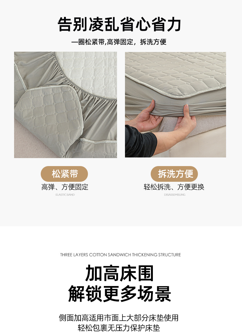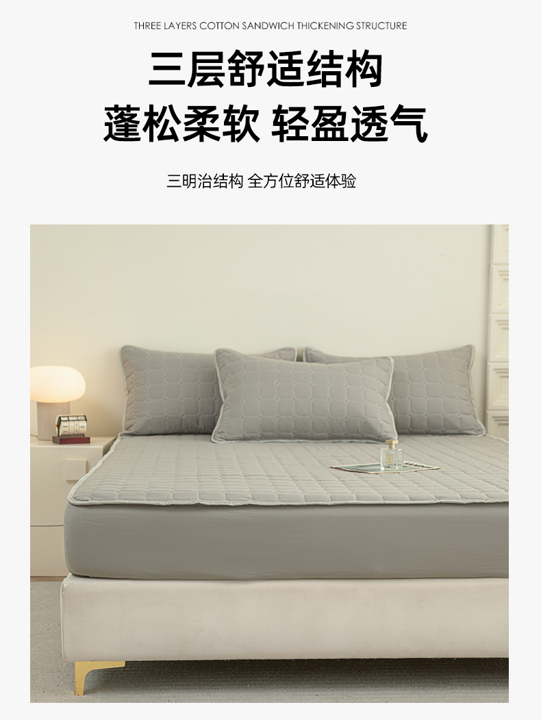 卡诗兰 2025新款外贸跨境电商亚马逊速卖通单床笠三件套欧美尺寸多多跨境平台TEMU SHEIN 浅灰,浅灰