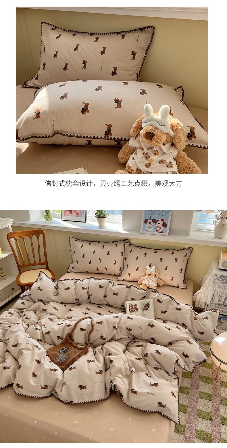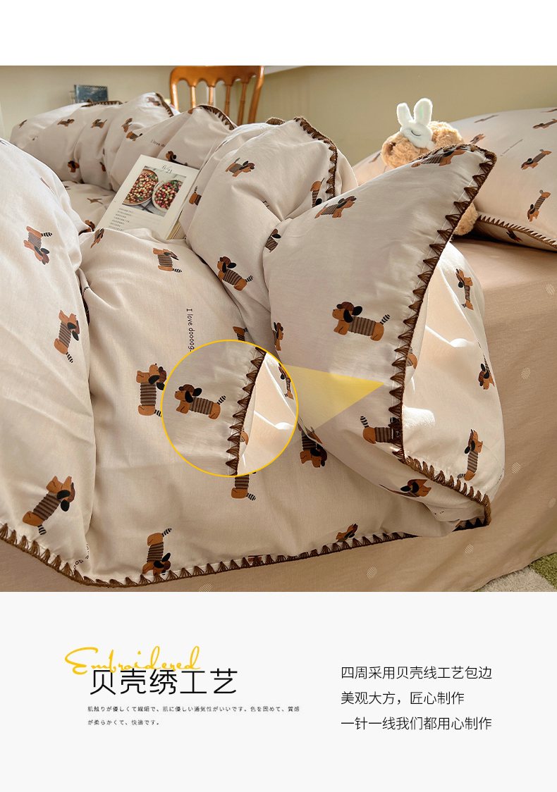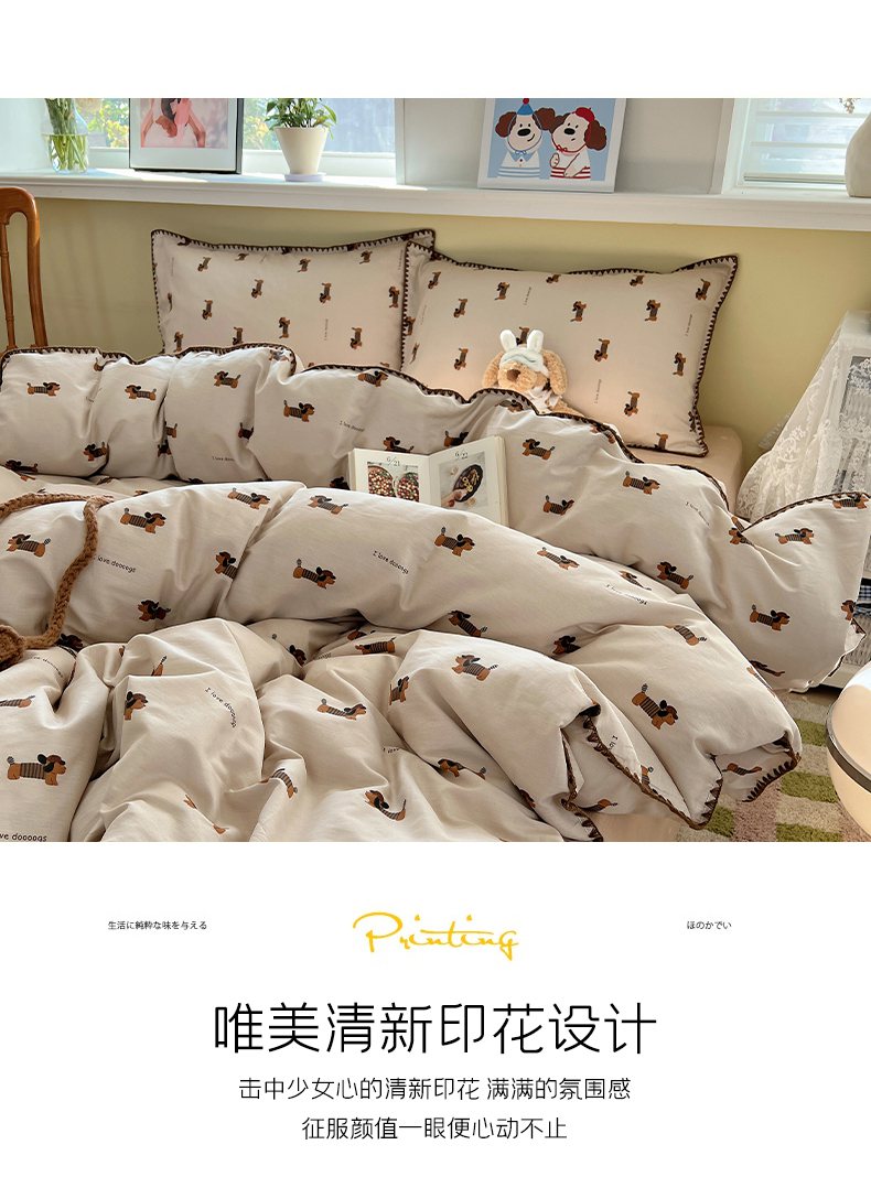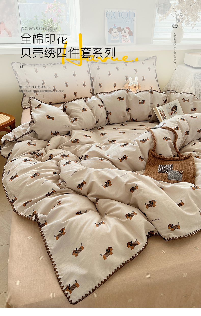 瑞莱 2026新款全棉印花贝壳边四件套 柯基漫游记