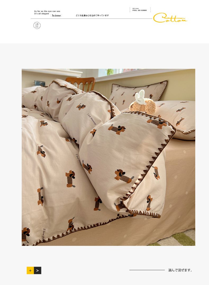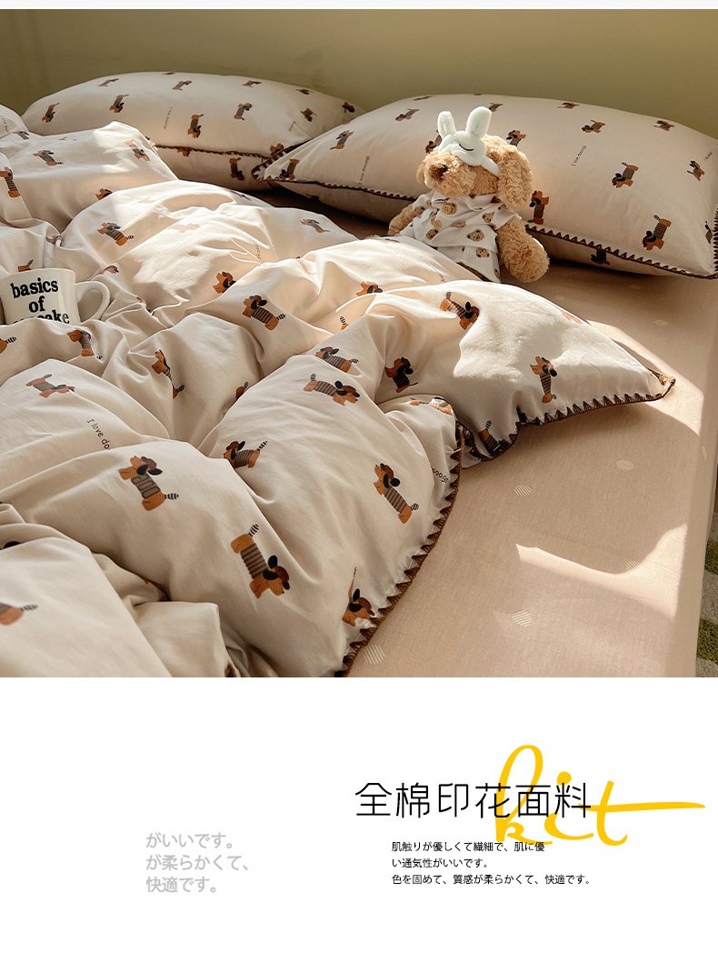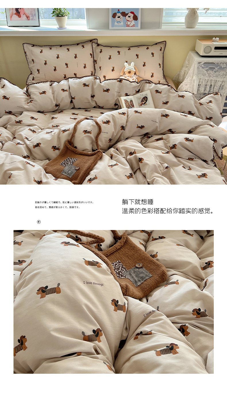 瑞莱 2026新款全棉印花贝壳边四件套 柯基漫游记