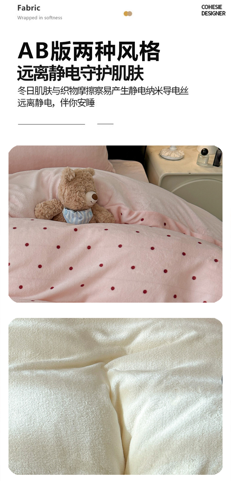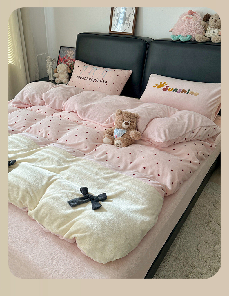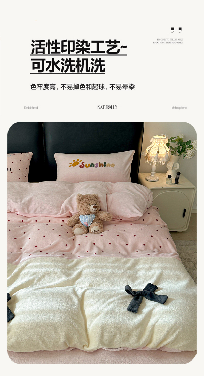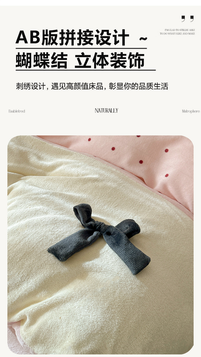 当前位置: 91家纺网 > 商品网购 > 床品套件 > 四件套 > 牛奶绒四件套 > 子钦家纺 2025秋冬新款加厚牛奶绒蝴蝶结公主风毛巾绣床单床笠四件套 牛奶绒公主风-粉波点