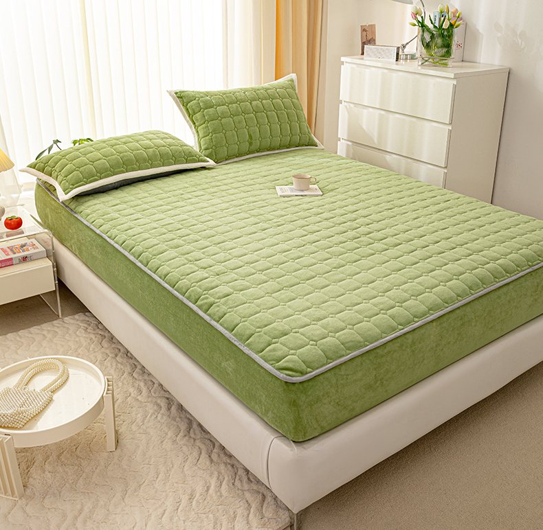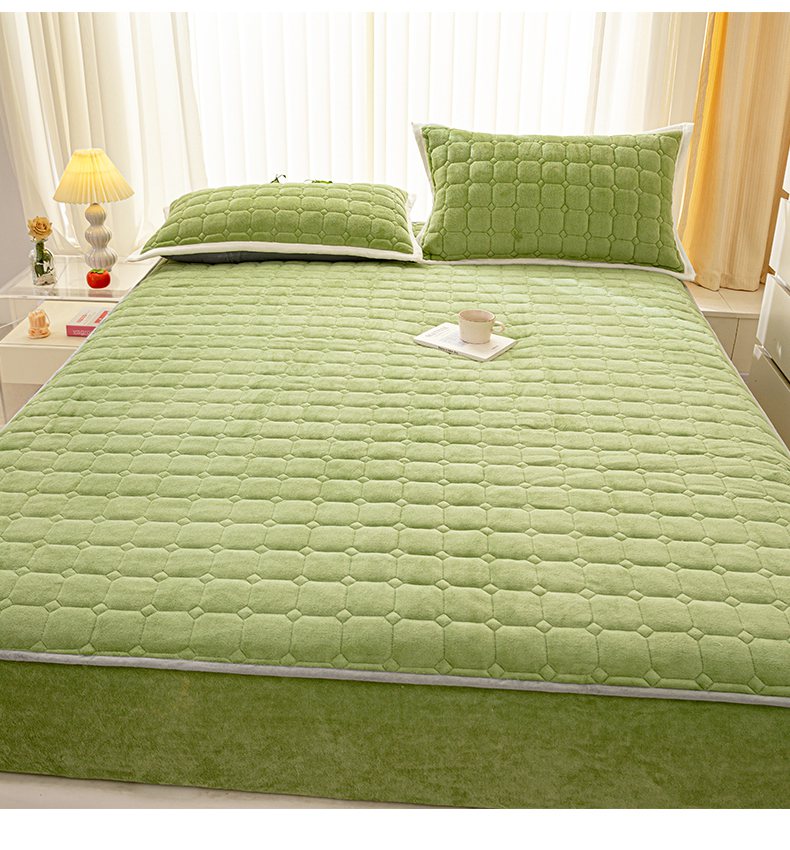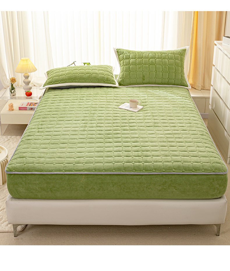 (总)女子家纺 2025新款加厚牛奶绒学生宿舍夹棉床笠,豆绿,豆沙,米白,墨蓝,深灰