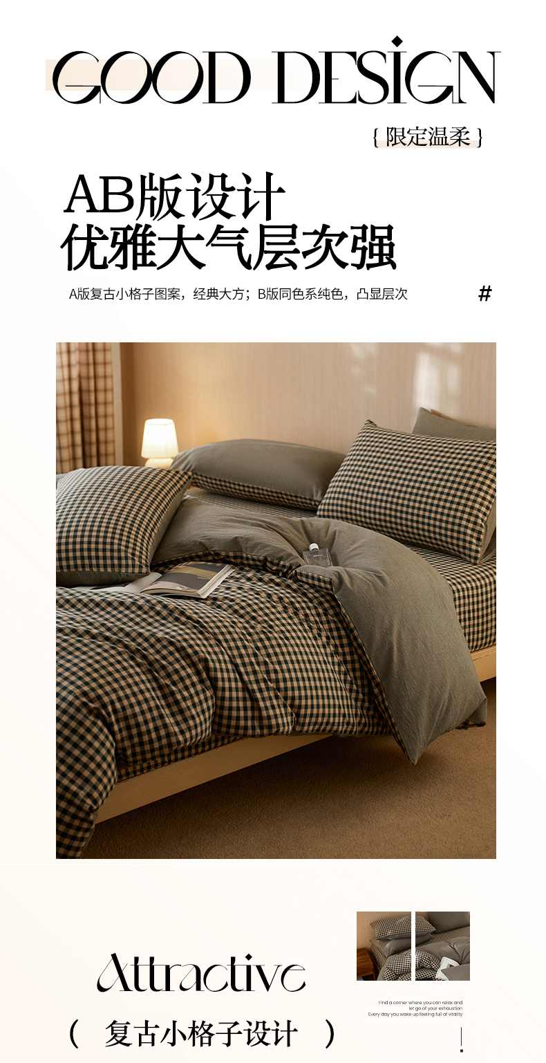 当前位置: 91家纺网 > 商品网购 > 床品套件 > 四件套 > 全棉普通四件套 > 启程家纺 2026新款纯棉水洗棉复古小格多规格系列四件套 复古小格-黑