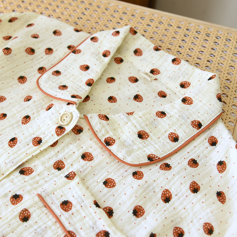 商品名称:洛兰沙家居馆 2025新款双层绉纱棉纱卡通系列女士家居服睡衣长袖长裤透气舒适四季款纯棉 奶芙蔷薇