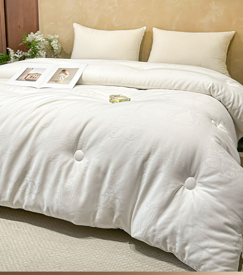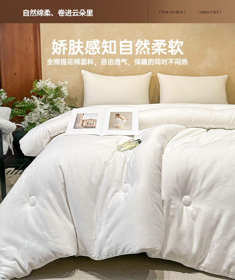 • 91家纺网 家纺一手货源 找家纺 壹张床 2025新款全棉40支大提花大豆被保暖冬被家用被子被芯春秋被冬被学生被 雅芙-白