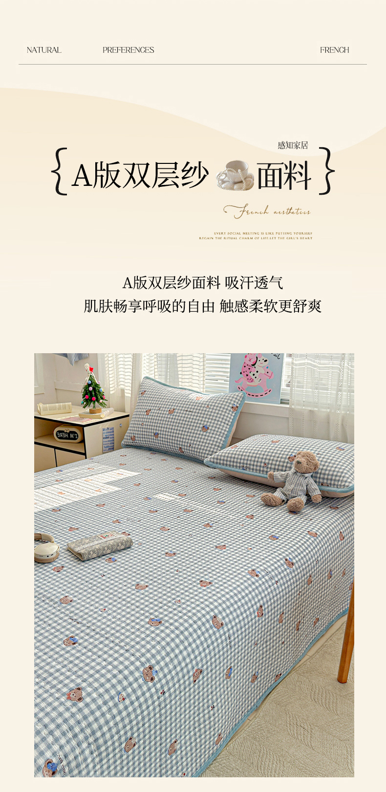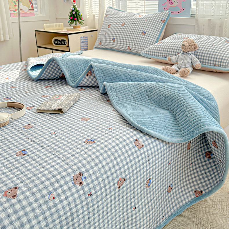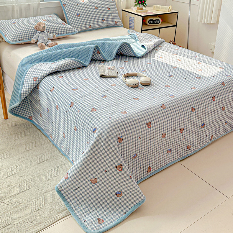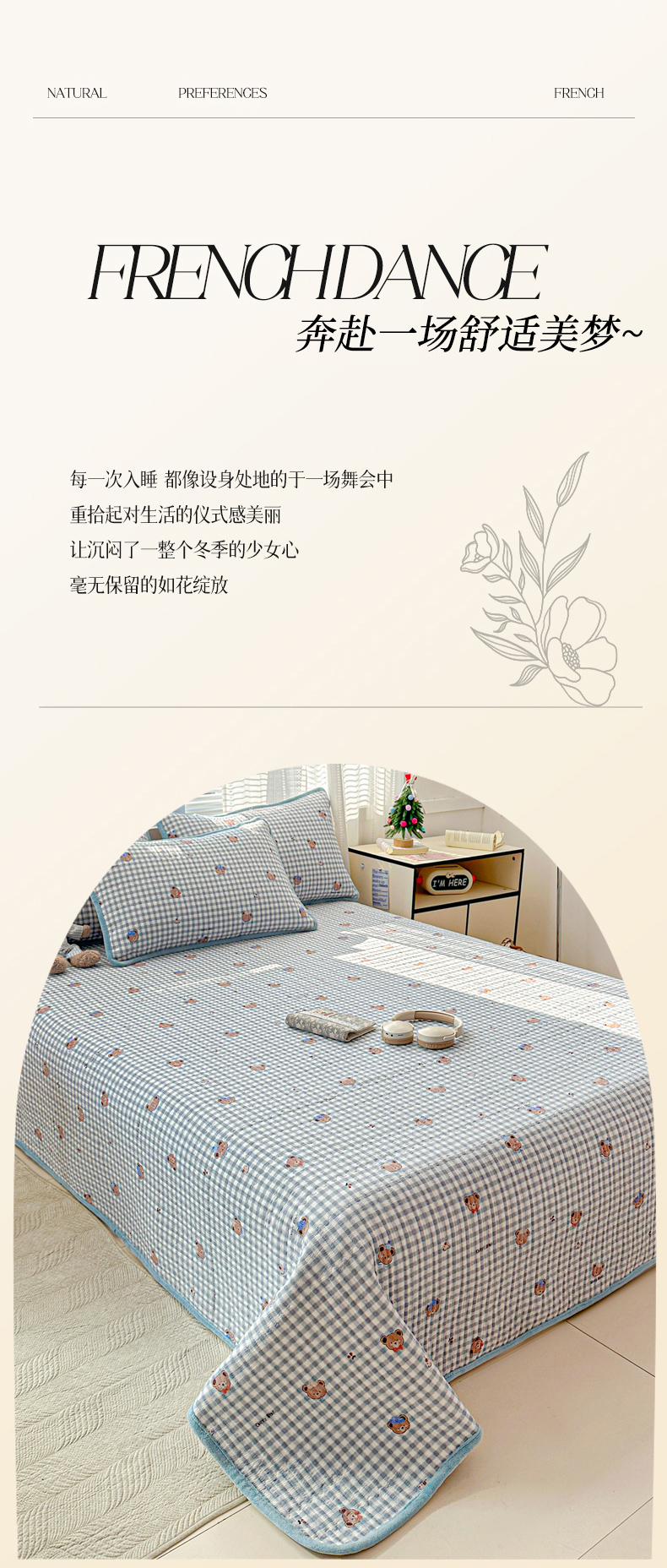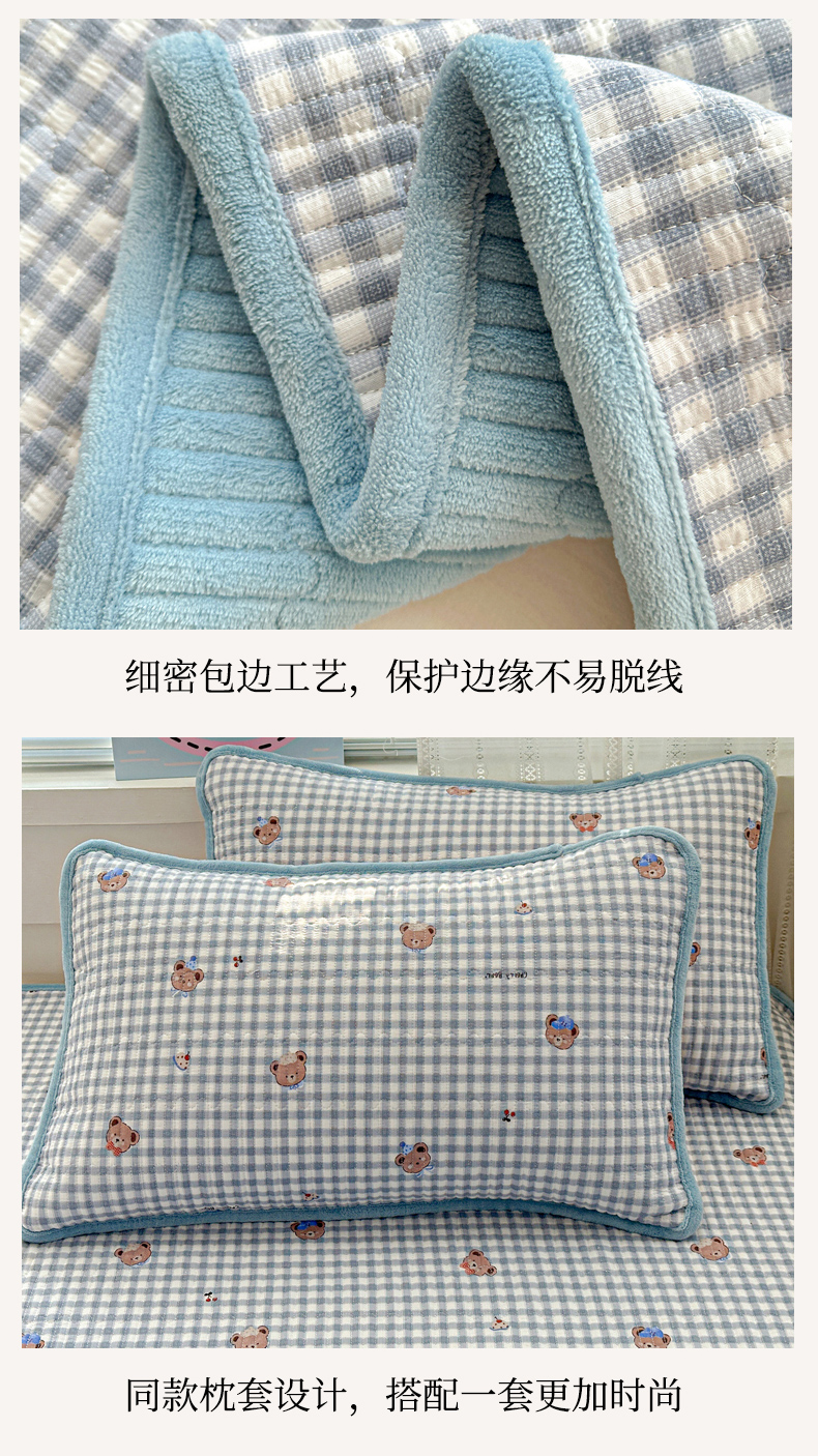 恒尚居 2026新款A双层纱B牛奶绒床盖双面两用夹棉床单学生床垫床褥子系列二 格子小熊【A双层纱-B牛奶绒】