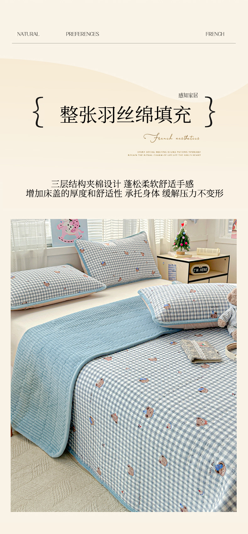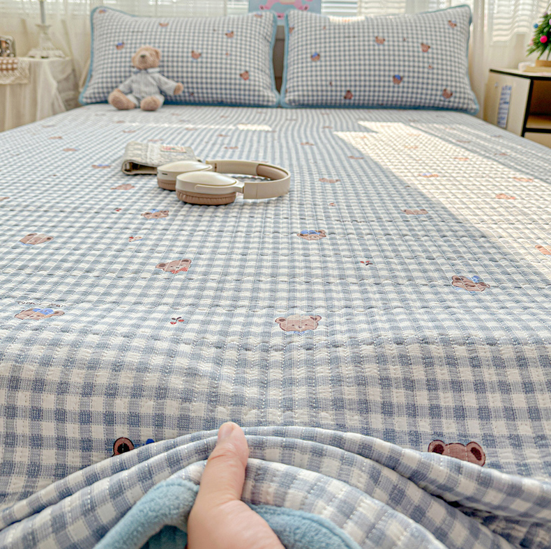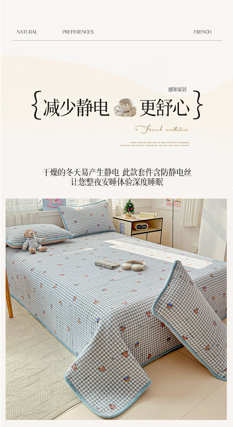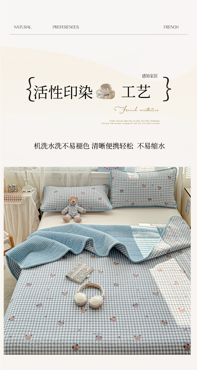 恒尚居 2026新款A双层纱B牛奶绒床盖双面两用夹棉床单学生床垫床褥子系列二 格子小熊【A双层纱-B牛奶绒】