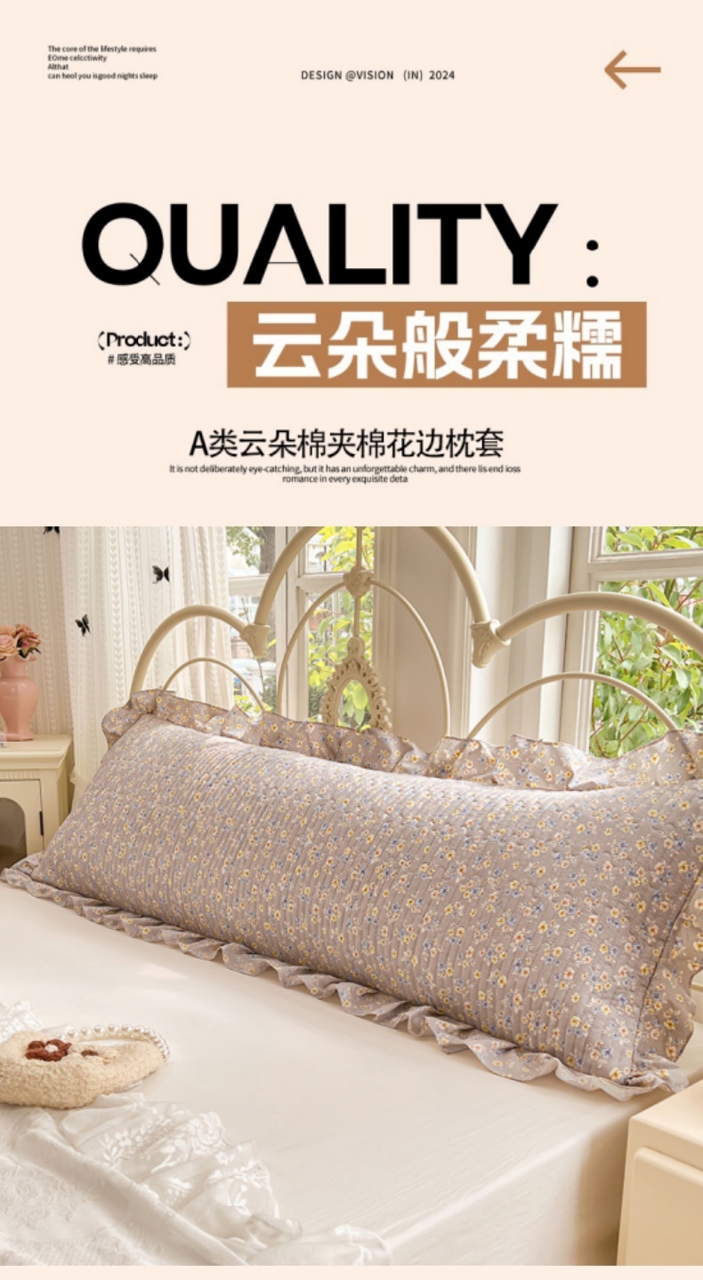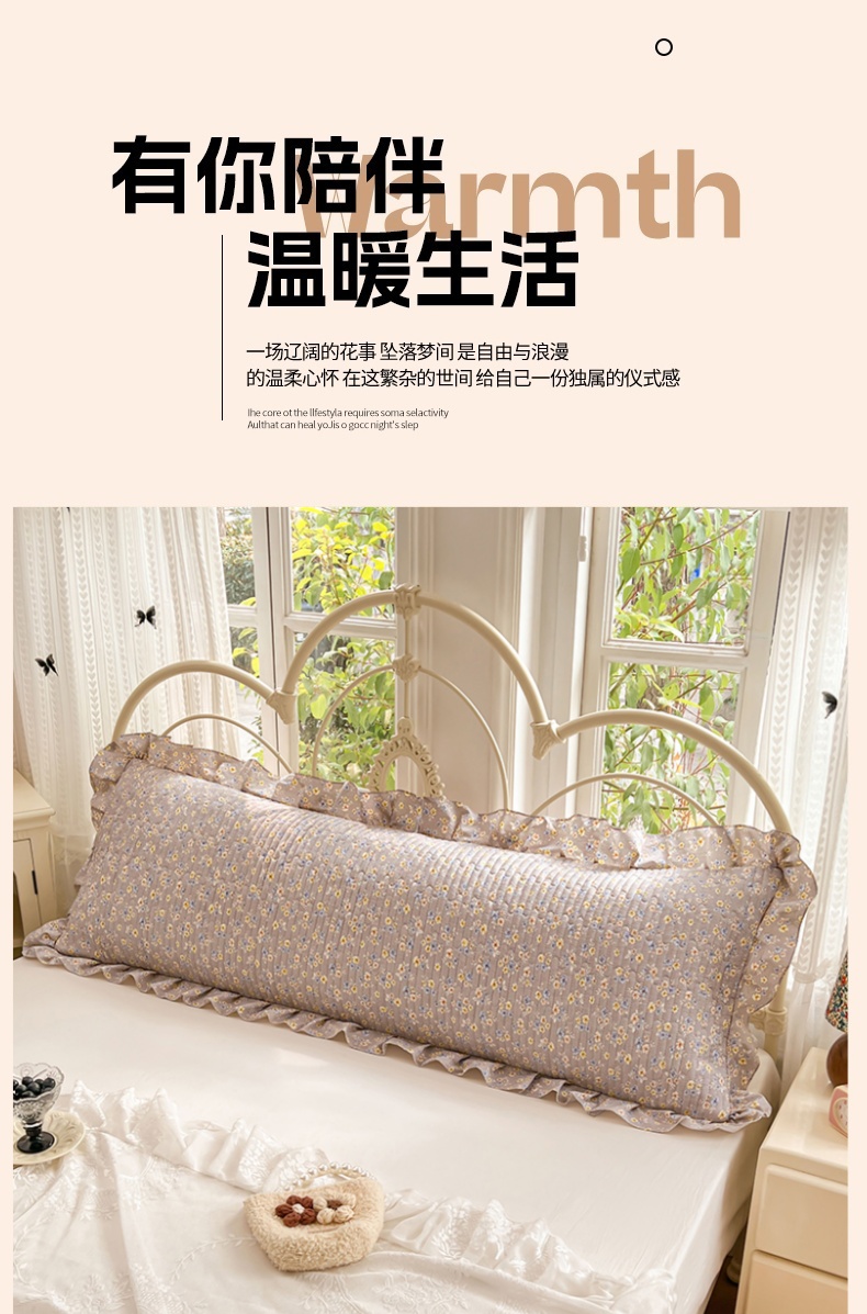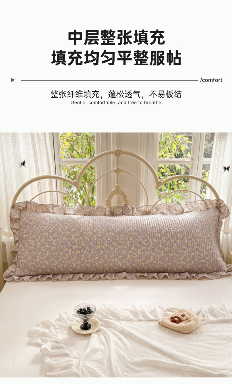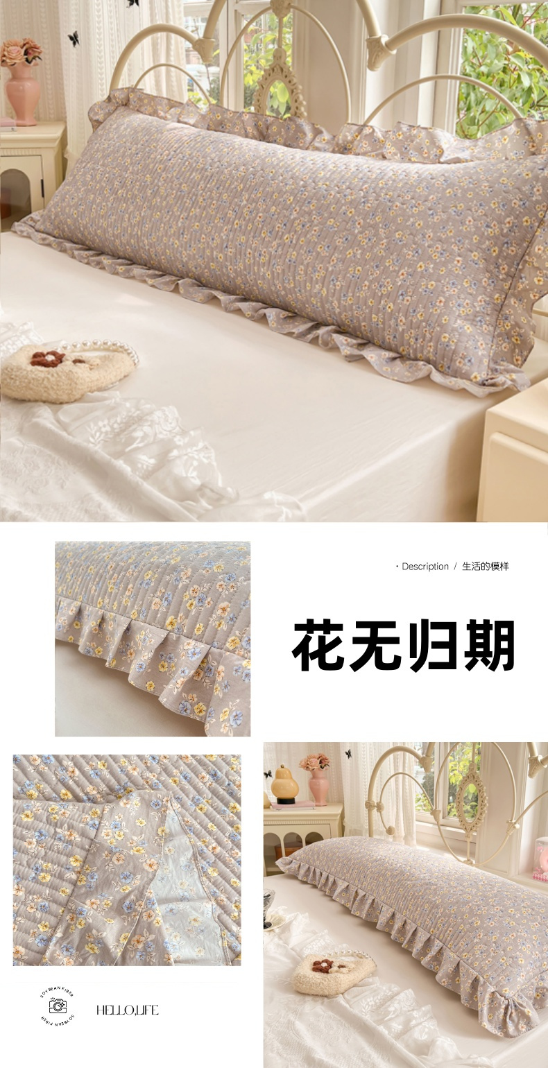 • 91家纺网 家纺一手货源 找家纺 梦舒羽 2026新款A类云朵棉夹棉花边枕套宿舍情侣双人加长枕芯内胆套-双人枕套 花无归期(花边夹棉)