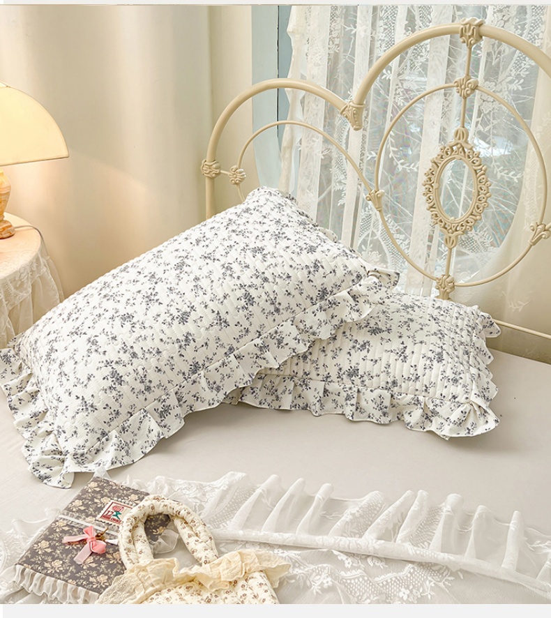 圣比熊 2026新款A类云朵棉夹棉花边枕套宿舍单人一只装枕芯内胆套-单人枕套 兰亭序-灰(花边夹棉)