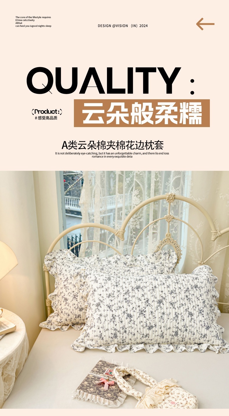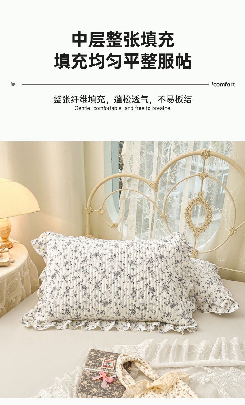 • 91家纺网 家纺一手货源 找家纺 圣比熊 2026新款A类云朵棉夹棉花边枕套宿舍单人一只装枕芯内胆套-单人枕套 兰亭序-灰(花边夹棉)