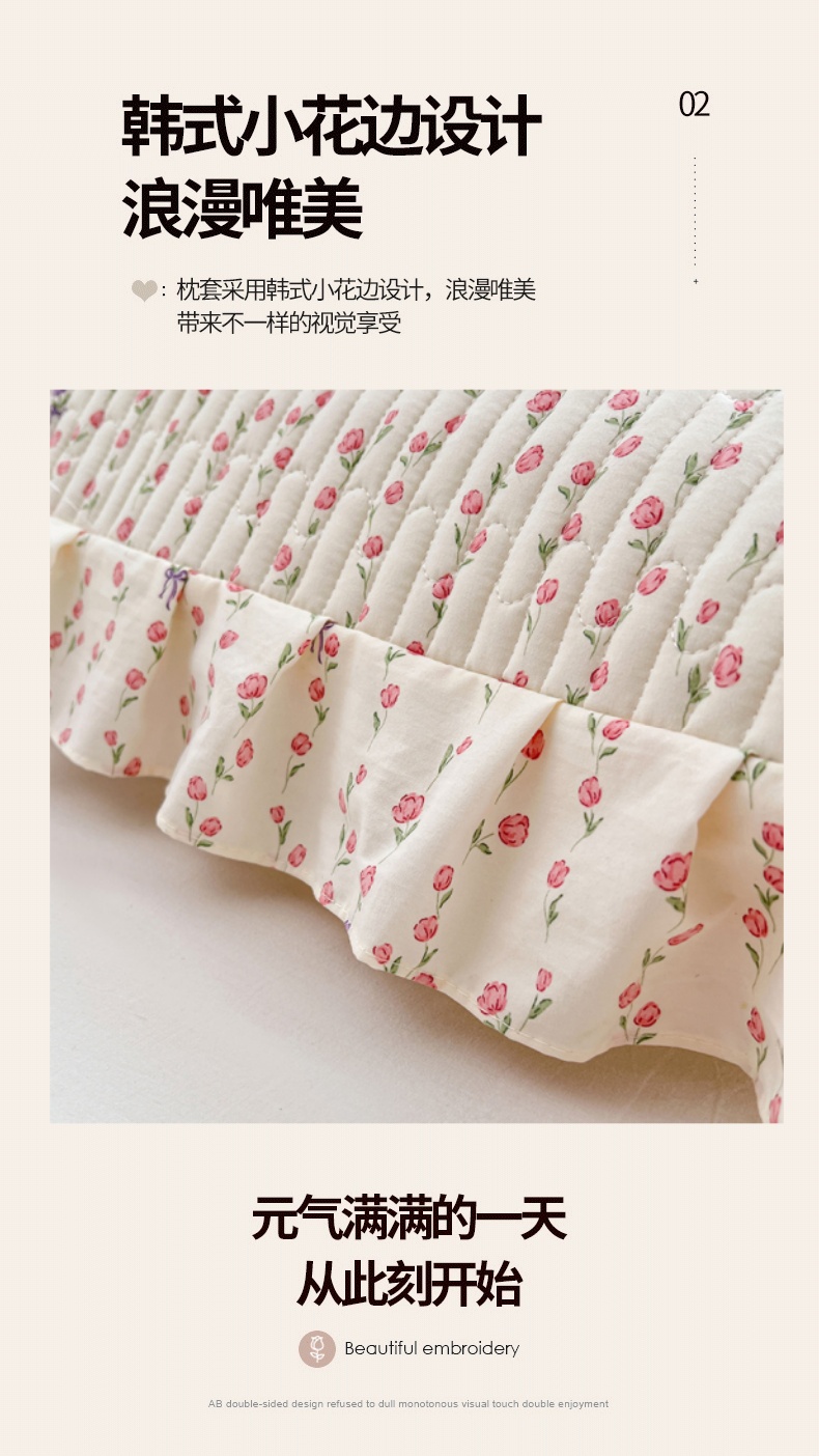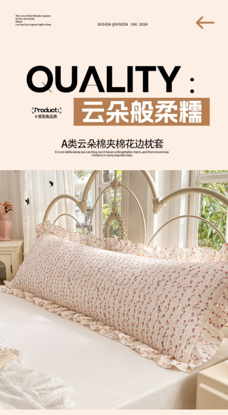 • 91家纺网 家纺一手货源 找家纺 圣比熊 2026新款A类云朵棉夹棉花边枕套宿舍情侣双人加长枕芯内胆套-双人枕套 花漾甜心(花边夹棉)