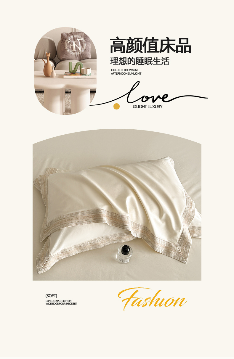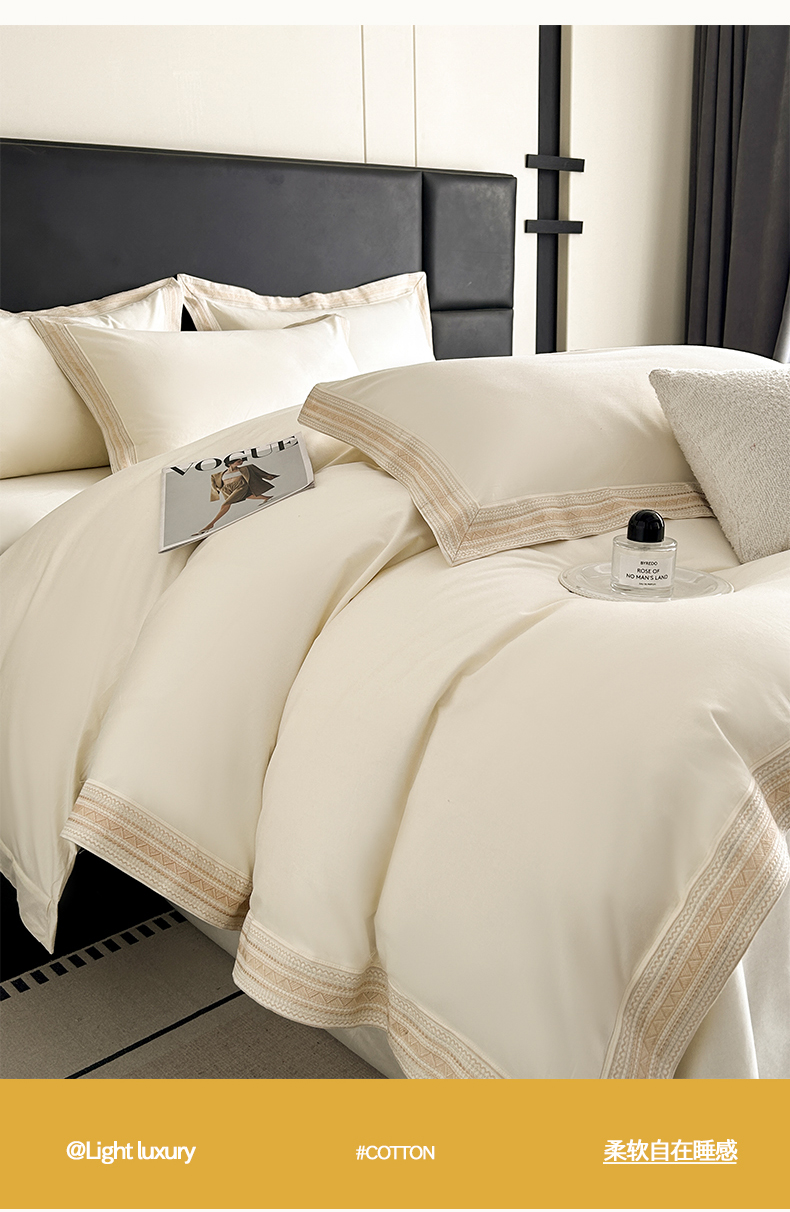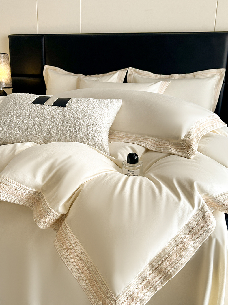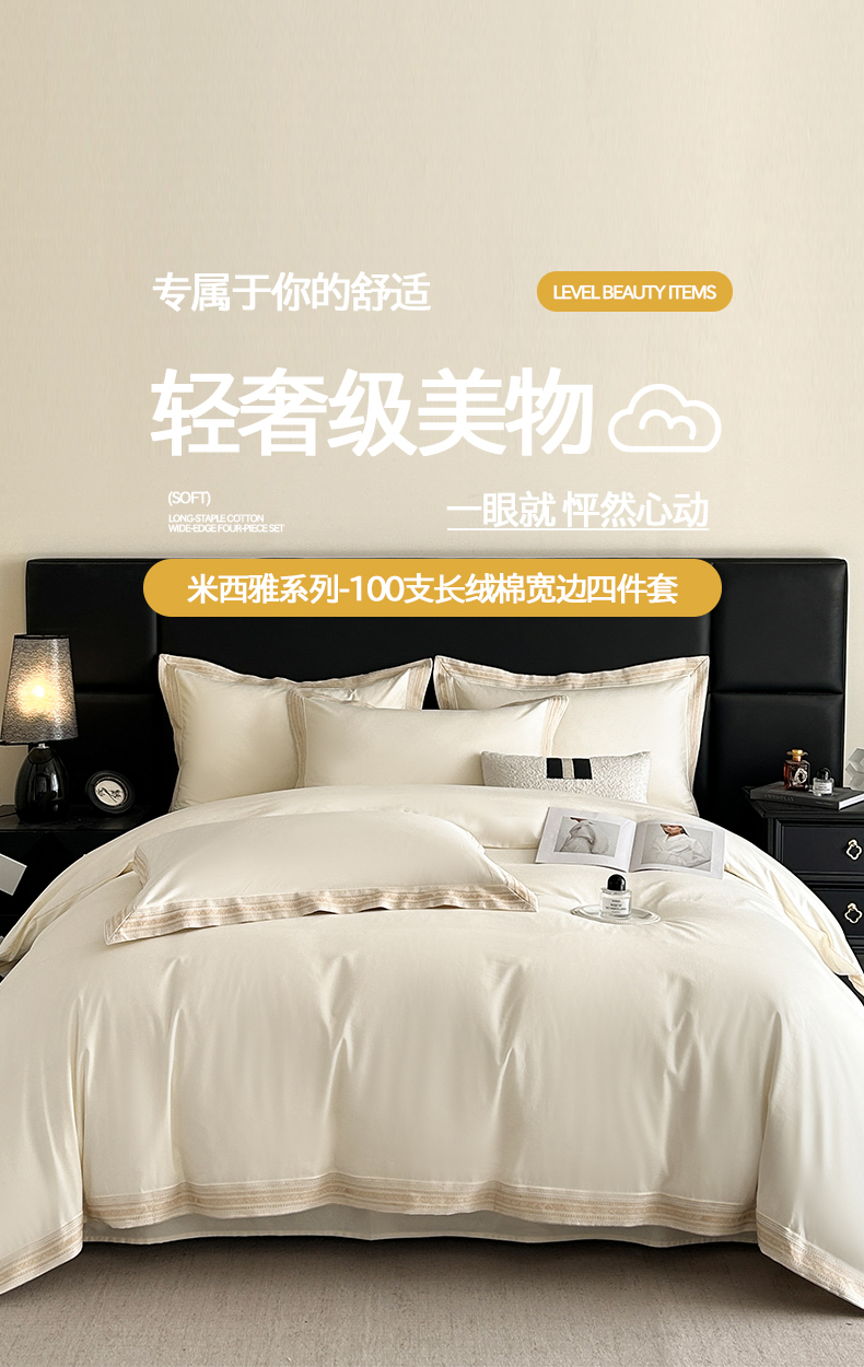 当前位置: 91家纺网 > 商品网购 > 床品套件 > 四件套 > 长绒棉四件套 > 置顶家纺 2025新款50双股支长绒棉纯棉宽边四件套-米西雅 米西雅-奶昔白