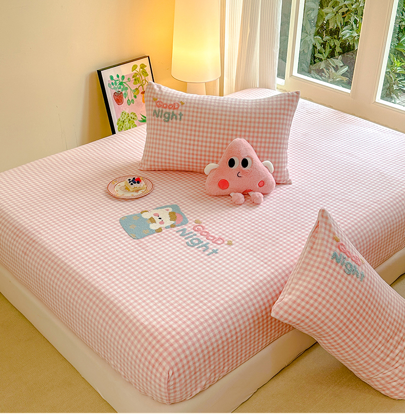 当前位置: 91家纺网 > 商品网购 > 床品套件 > 四件套 > 牛奶绒四件套 > 欣宜家纺 2025秋冬新款毛巾绣花卡通ins风高克重牛奶绒床笠三件套 泡芙粉