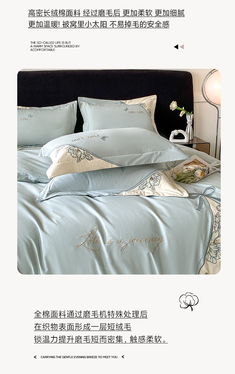 欣宜家纺 2025新款纯棉全棉长绒棉磨毛不掉毛四件套高端礼盒-罗德岛系列 飘蓝