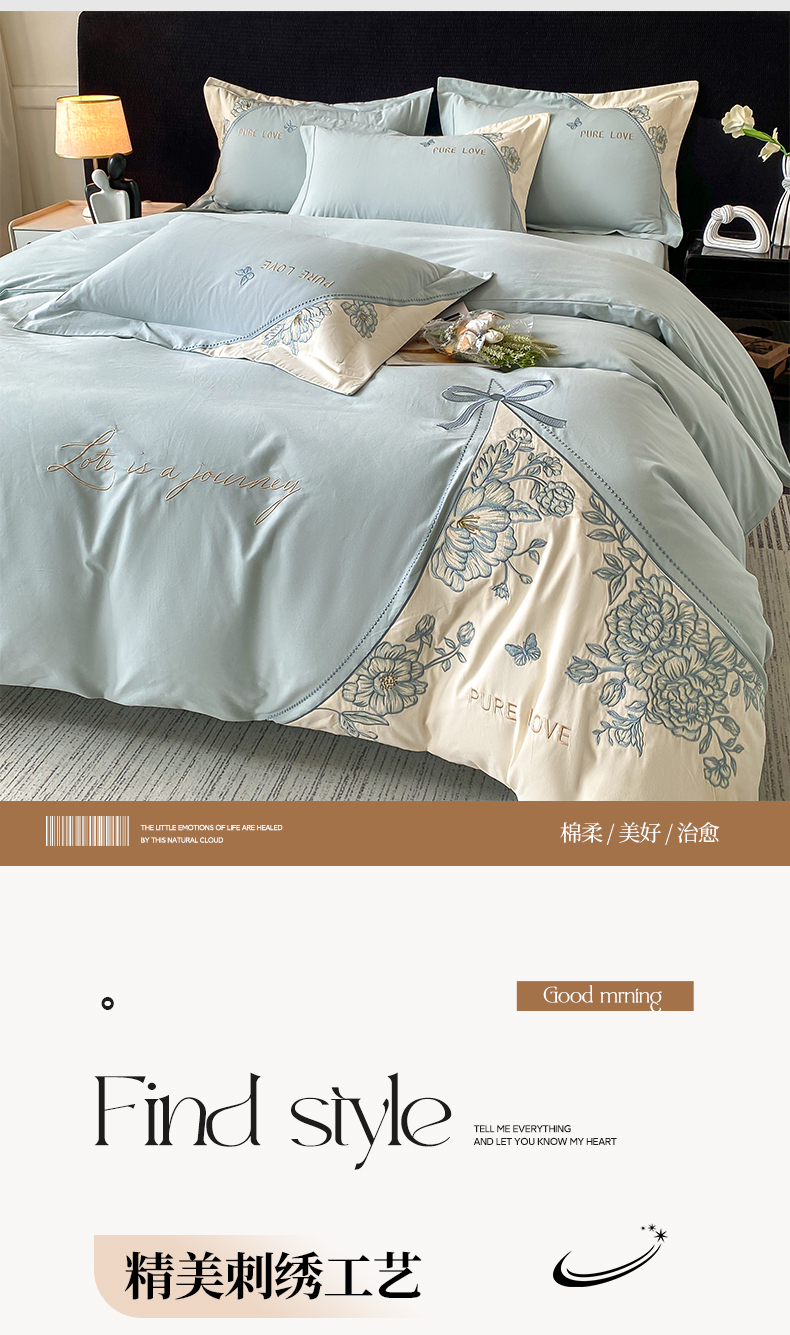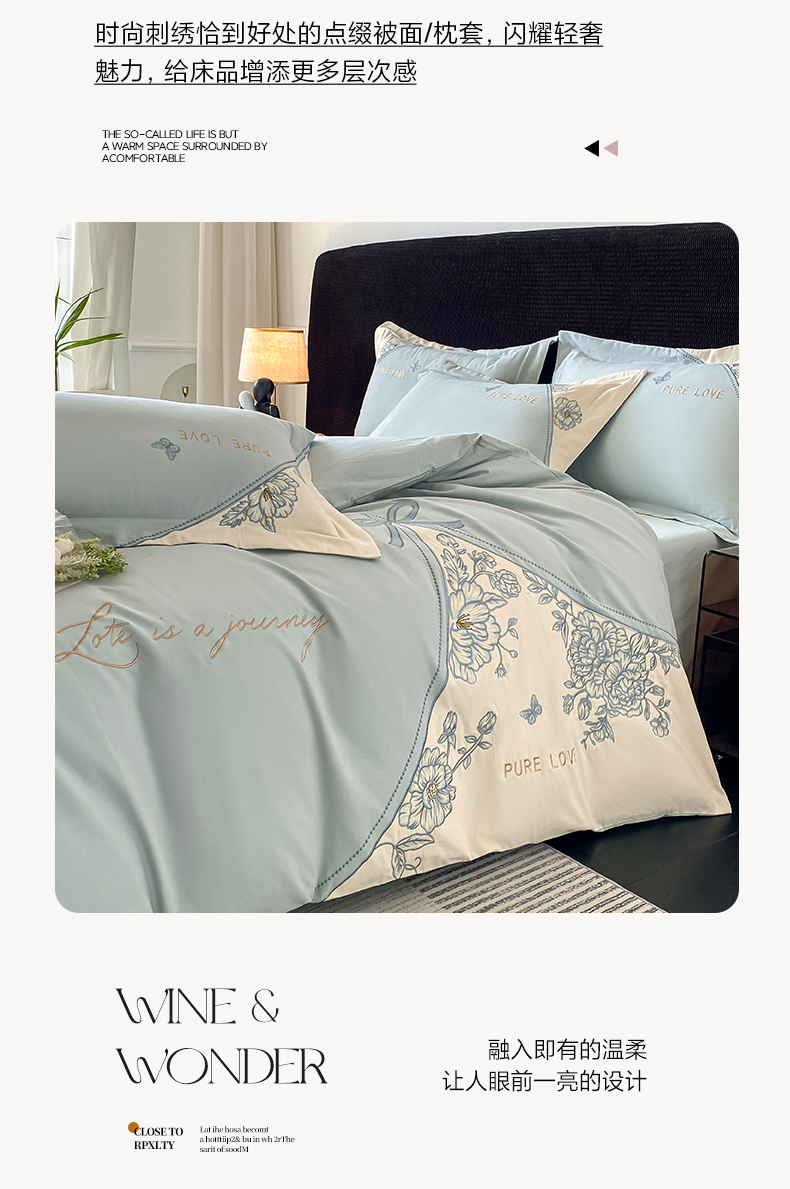 (总)欣宜家纺 2026春夏新款60支A类新疆长绒棉刺绣全棉四件套纯棉床品套件,玛丽-香芋紫,玛丽-梦幻蓝,玛丽-奶白,玛丽-轻奢粉,玛丽-石灰