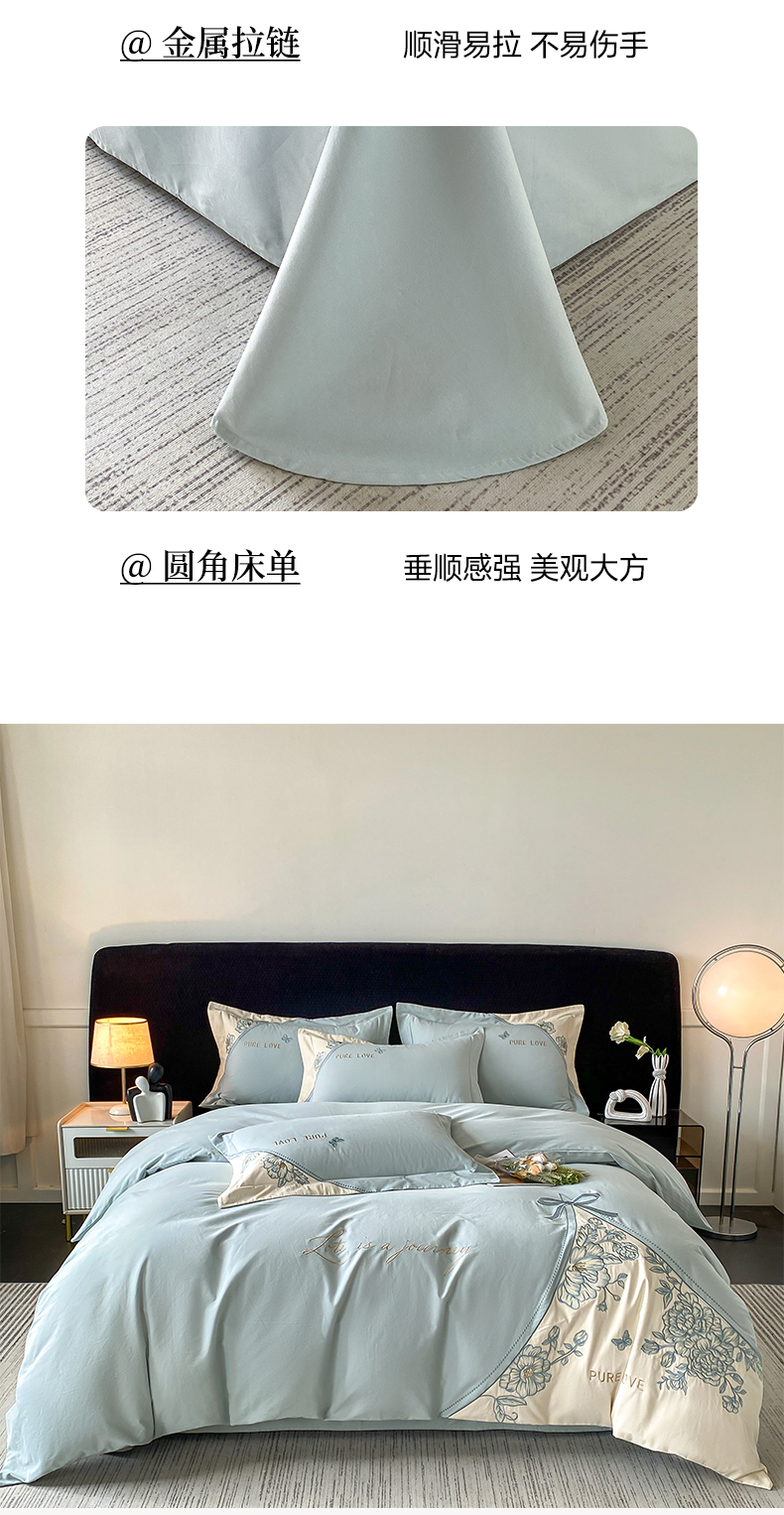 (总)欣宜家纺 2026春夏新款60支A类新疆长绒棉刺绣轻奢风四件套,樱花-白粉,樱花-清香绿,樱花-少女粉,樱花-天天蓝,樱花-香芋紫
