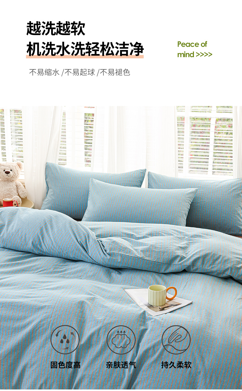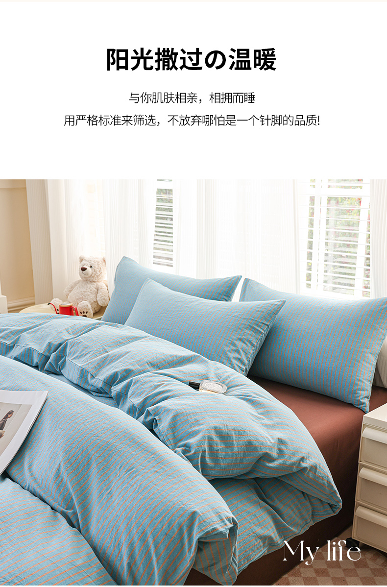 当前位置: 91家纺网 > 商品网购 > 床品套件 > 四件套 > 水洗棉四件套 > 柠萌家居 2026新款色织水洗棉四件套单被套 蓝咖条