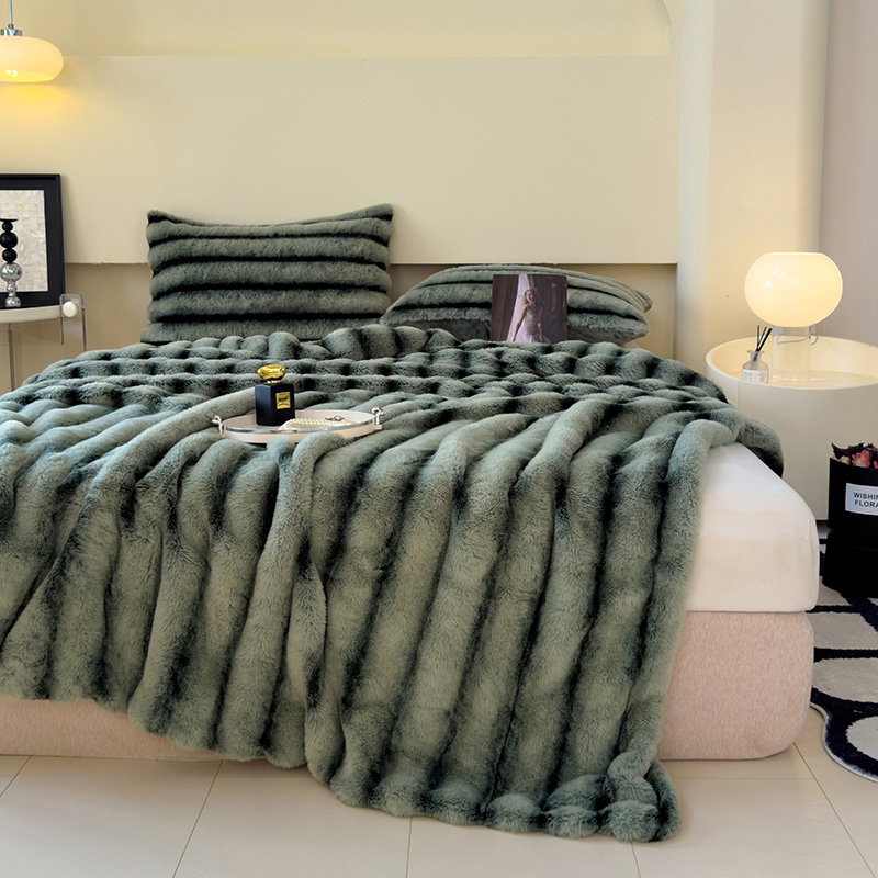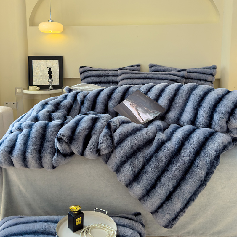 欣宜家纺 2025新款兔兔绒牛奶绒加厚兔毛毯保暖毯子 深灰