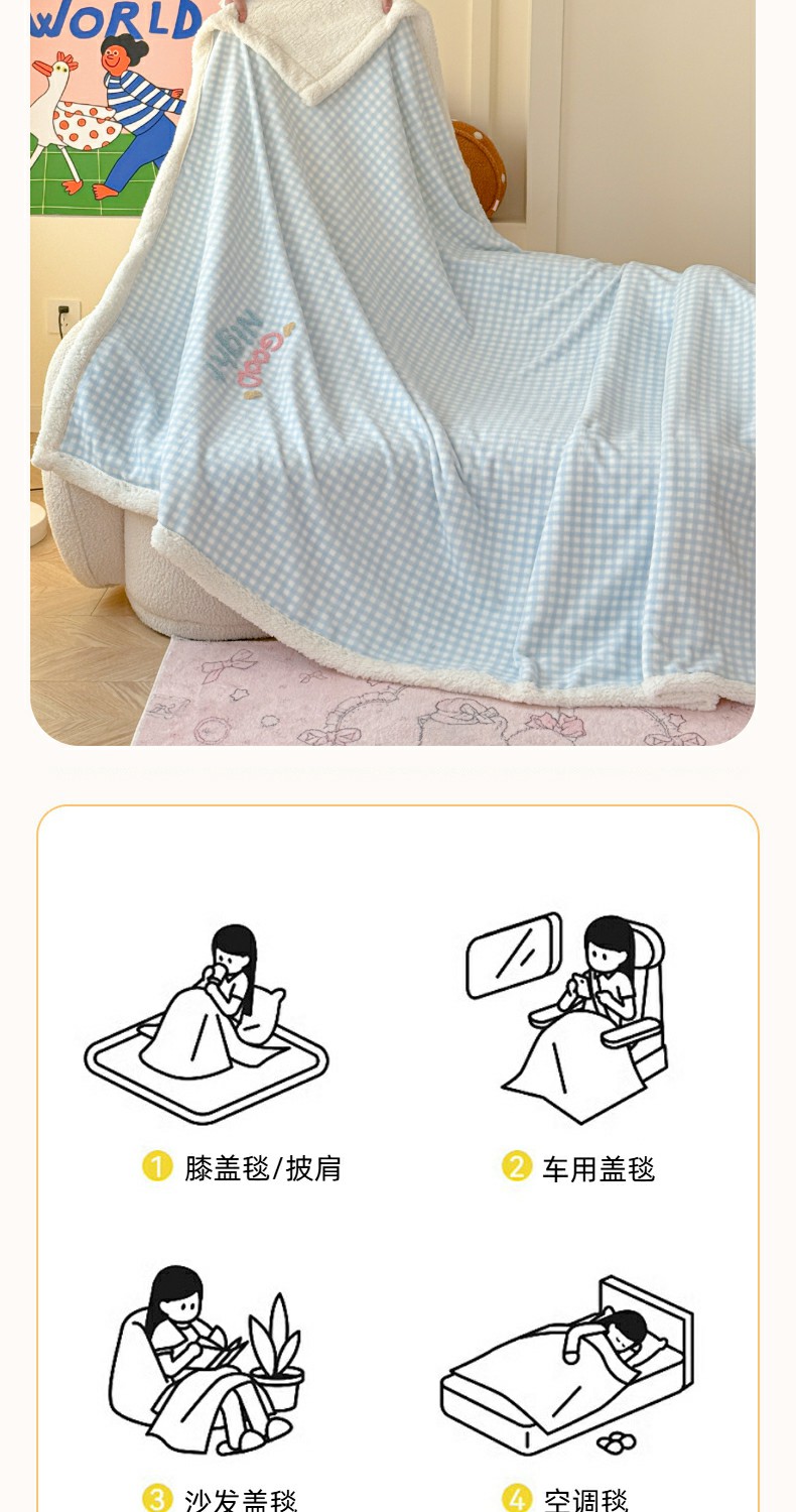 (总)欣宜家纺 2025新款加厚毛巾刺绣牛奶绒羊羔绒盖毯双层毛毯午休毯卡通多功能沙发办公室毯子