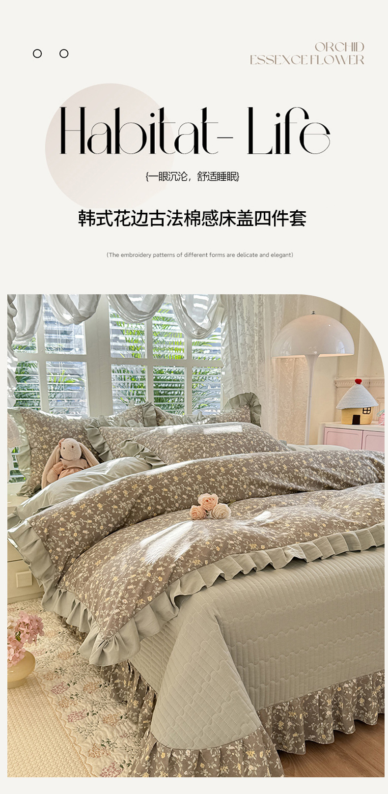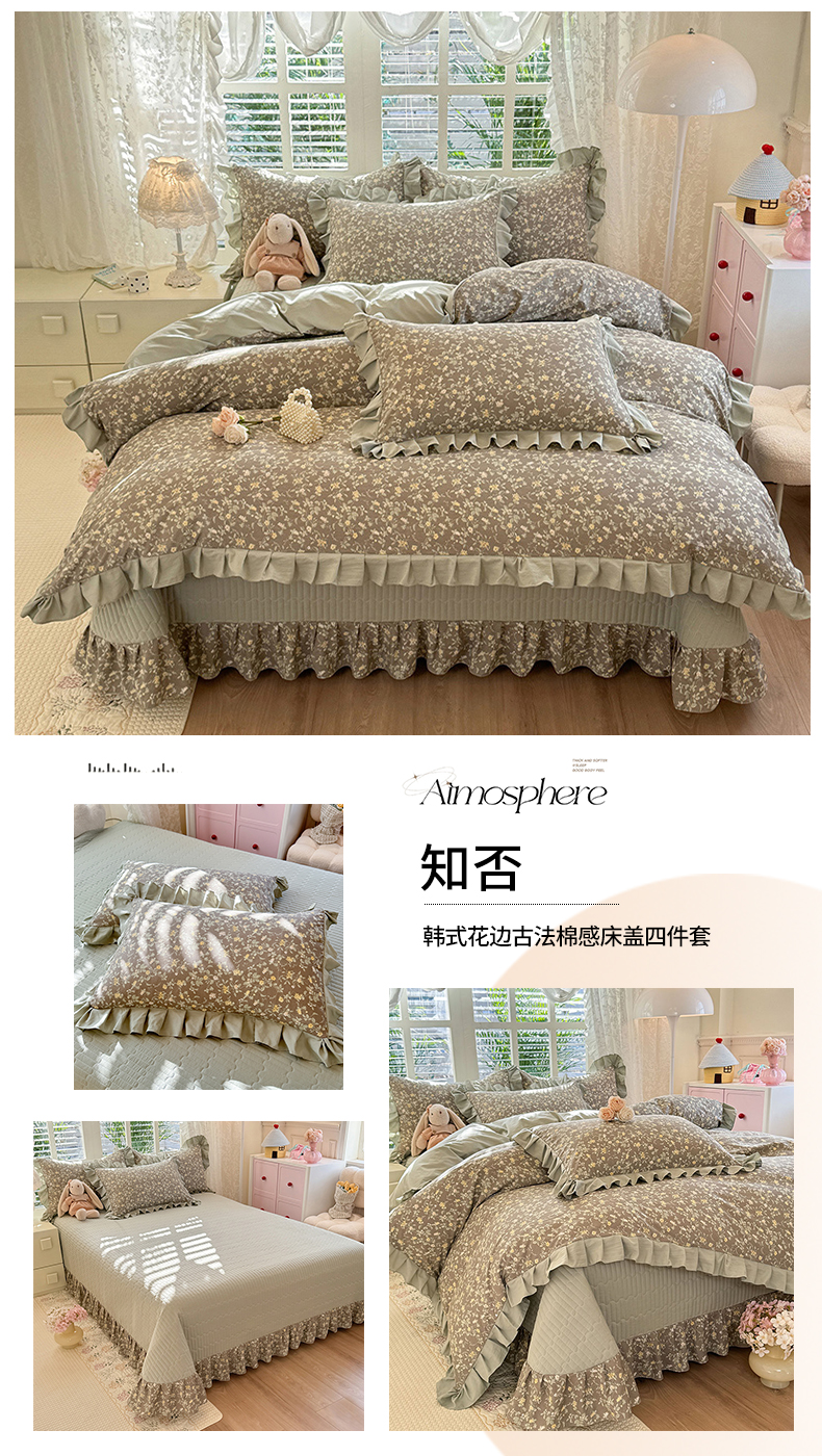 当前位置: 91家纺网 > 商品网购 > 床品套件 > 四件套 > 化纤普通四件套 > 韩约家纺 2026新款韩式花边古法棉感床盖四件套 午后时光