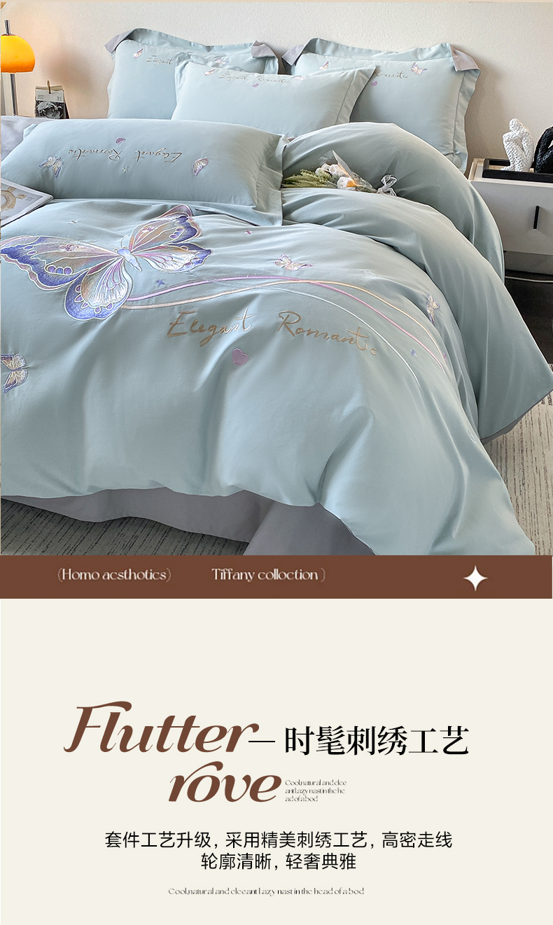 (总)欣宜家纺 2026春夏新款A类60支长绒棉刺绣四件套--蝶纷飞系列,蝶纷飞-粉,蝶纷飞-紫,蝶纷飞-蓝,蝶纷飞-绿