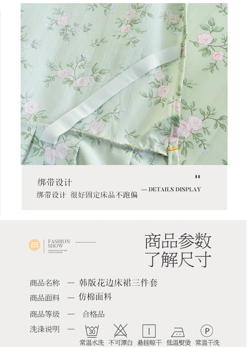 当前位置: 91家纺网 > 商品网购 > 床上用品 > 床裙 > 小雨家纺 2026新款云锦棉韩版印花单床裙系列 云望舒9053(山野绿)