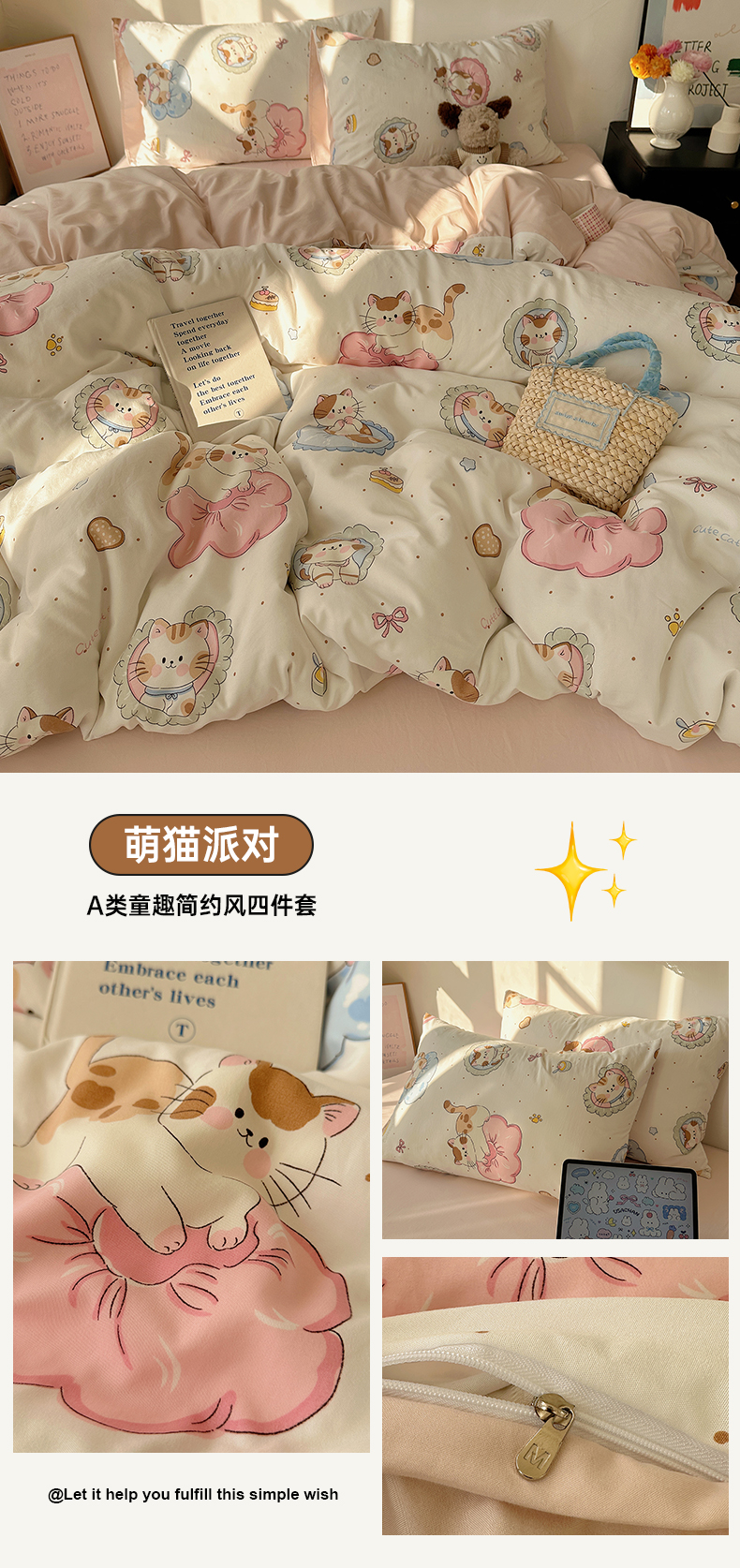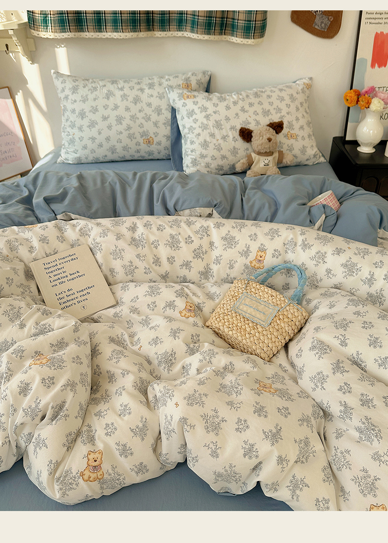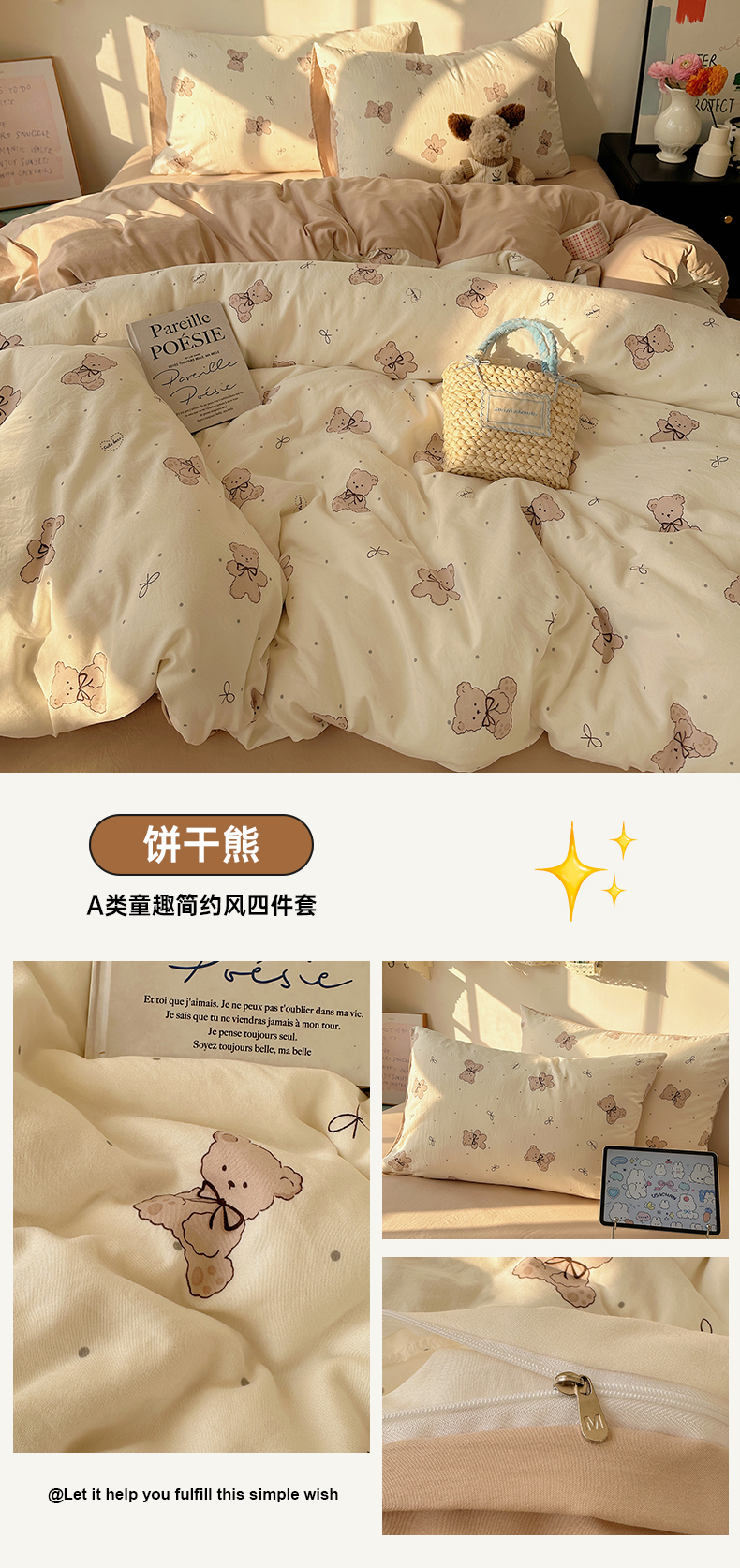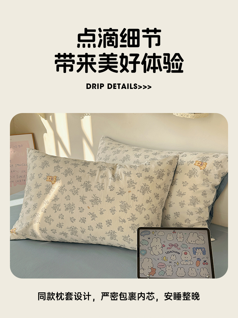 当前位置: 91家纺网 > 商品网购 > 床品套件 > 四件套 > 水洗棉四件套 > 沐芷 2026 【提供买家秀】水洗棉四件套A类简约小清新床上用品床笠款被套床单三件套被罩卡通可爱 雾蓝西高地