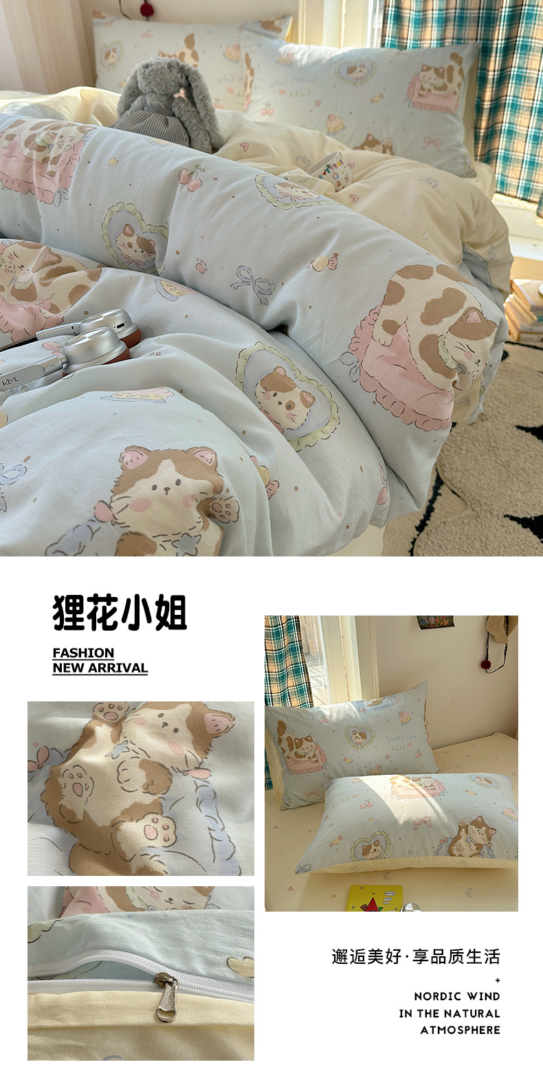 当前位置: 91家纺网 > 商品网购 > 床品套件 > 四件套 > 全棉普通四件套 > 瑞莱 2026新款ing小清新费尔岛全棉四件套 费尔岛小狗