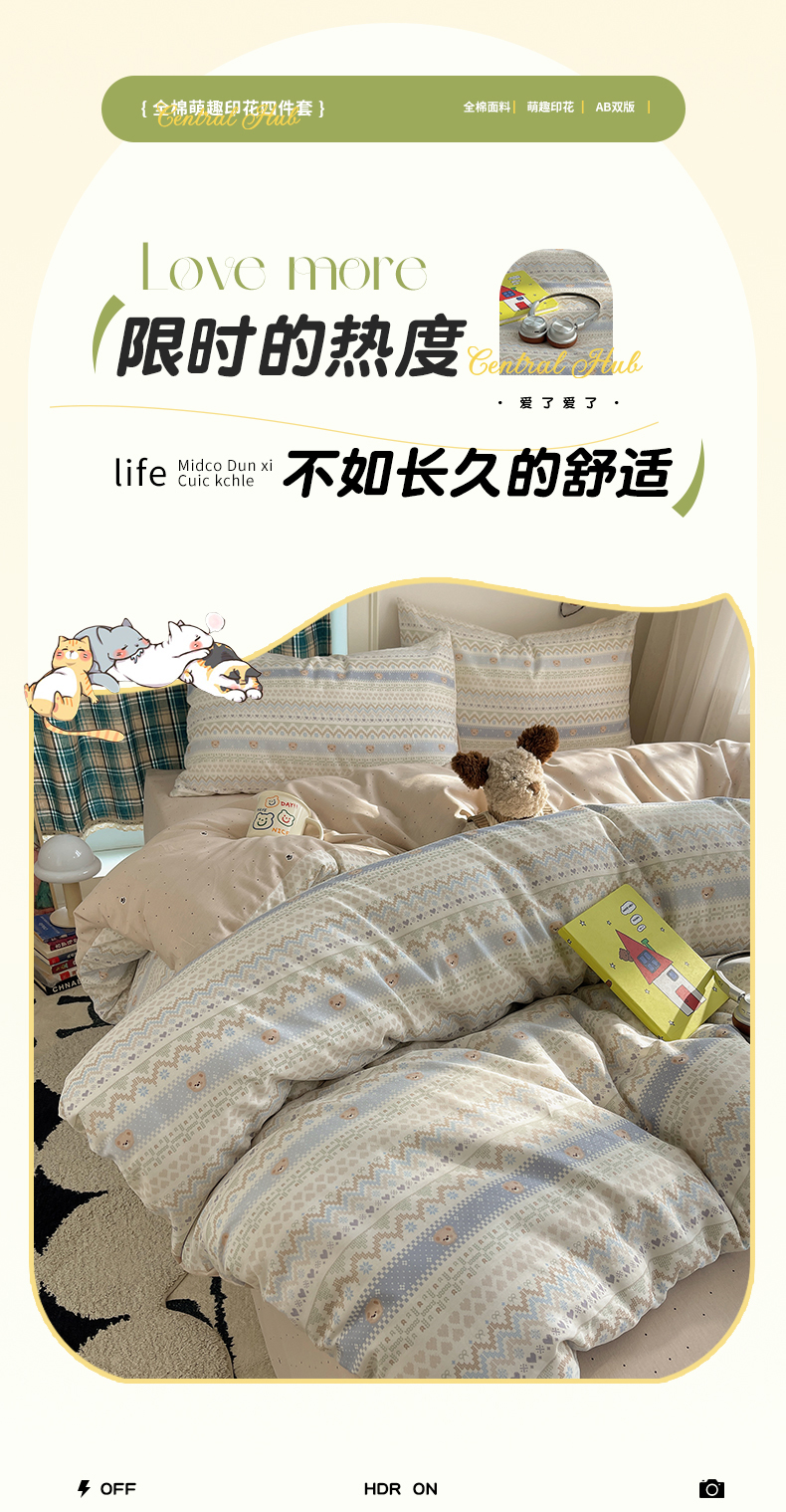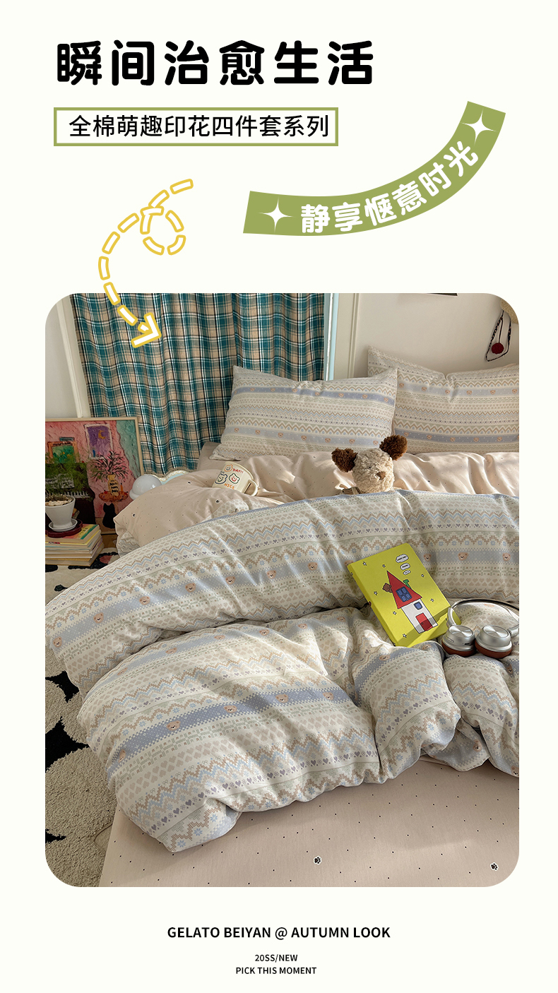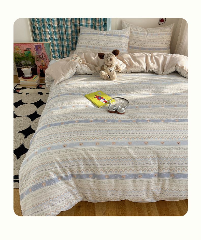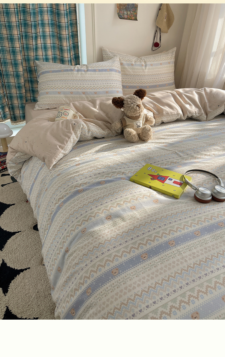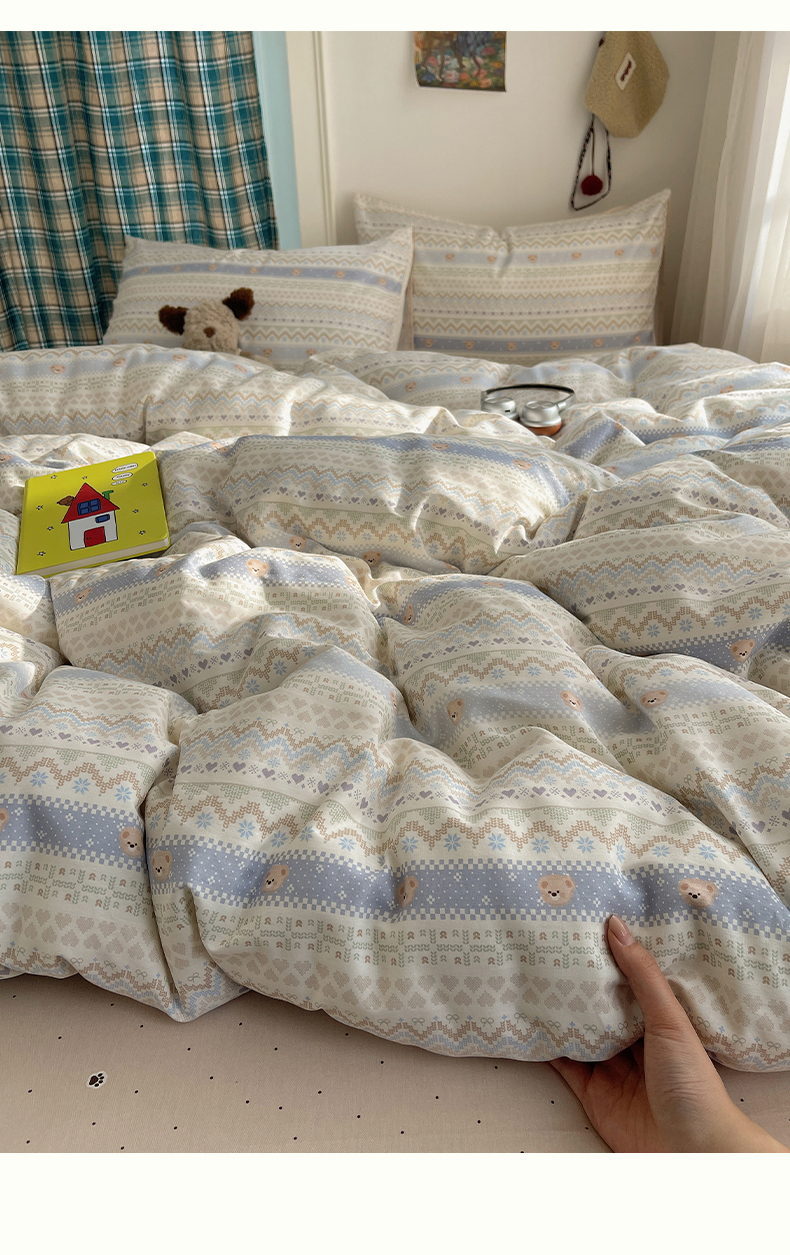 当前位置: 91家纺网 > 商品网购 > 床品套件 > 四件套 > 全棉普通四件套 > 瑞莱 2026新款ing小清新费尔岛全棉四件套 云织熊熊