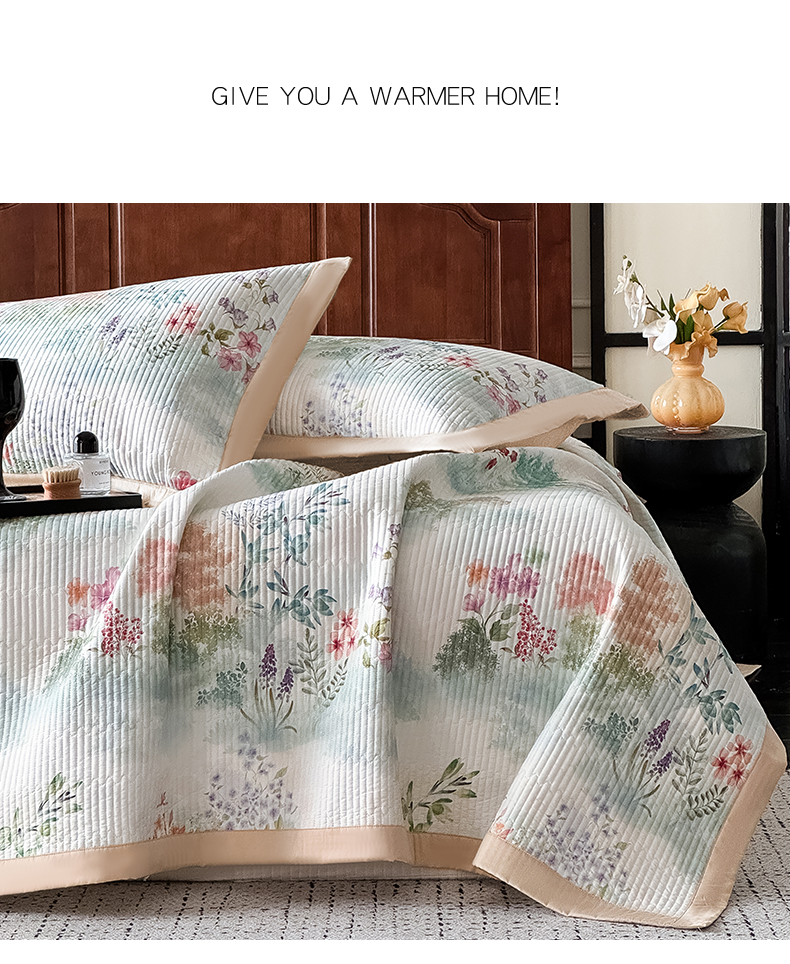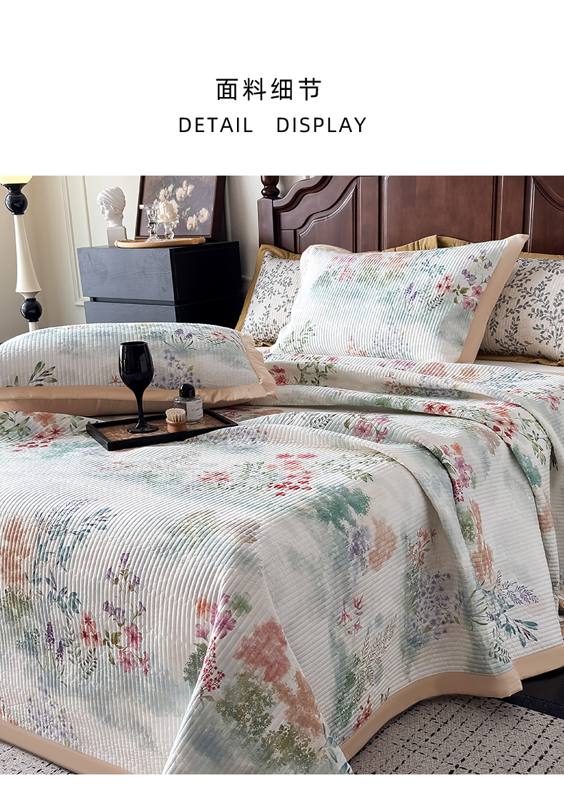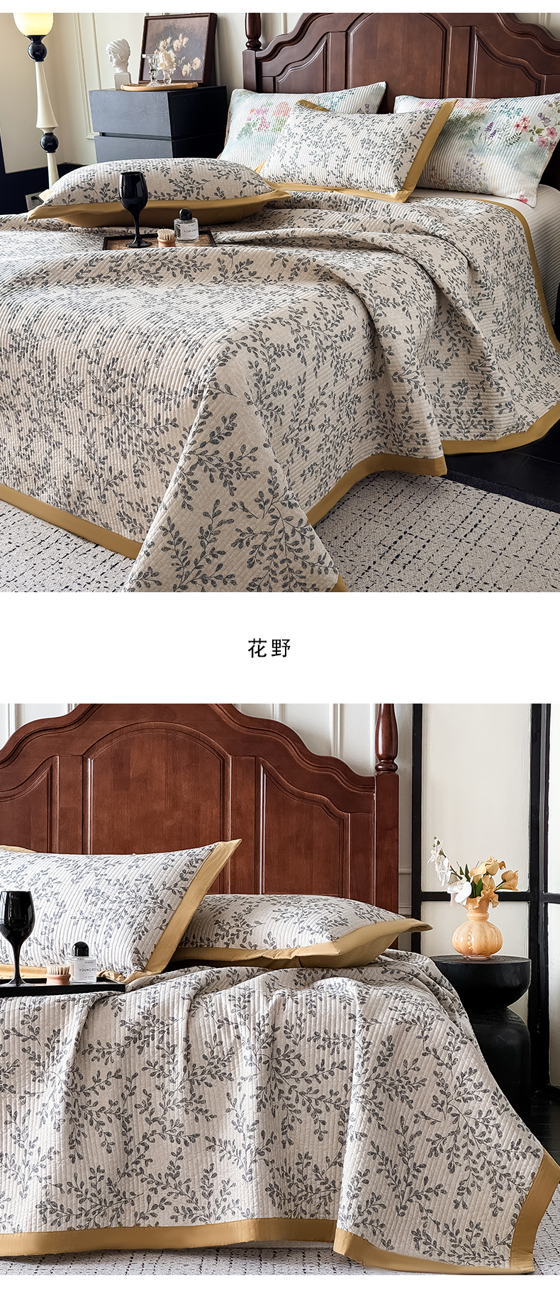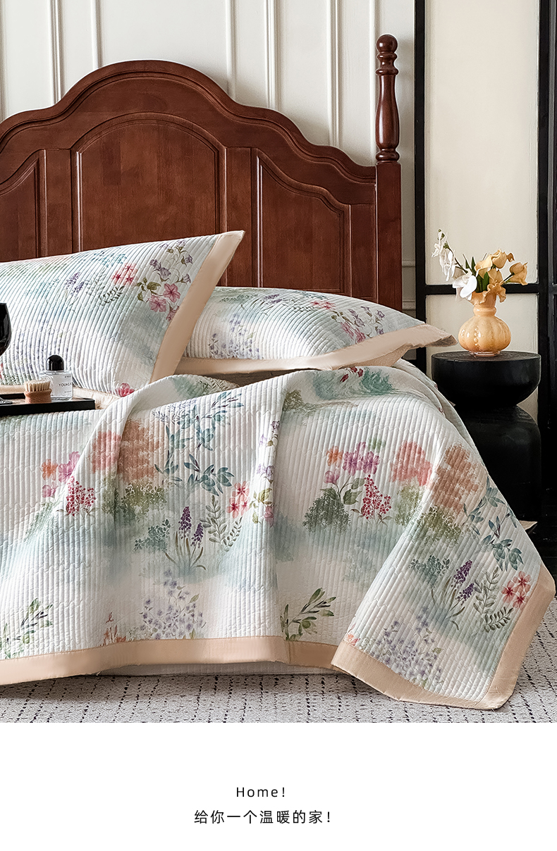 床上用品 > 床盖 > Mr.pig猪先生水洗棉 2026新款全棉数码印花夹棉床盖单件床盖三件套(展示价格为控价,实际价格请联系客服) 春日絮语