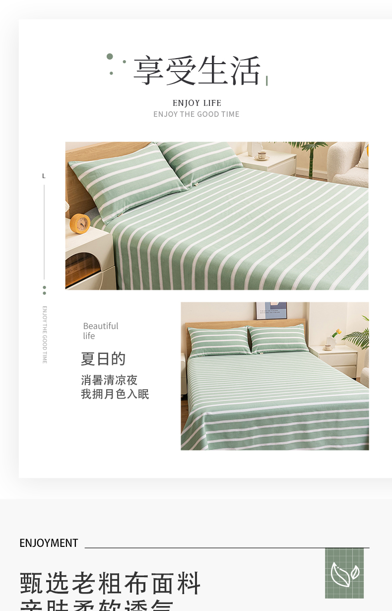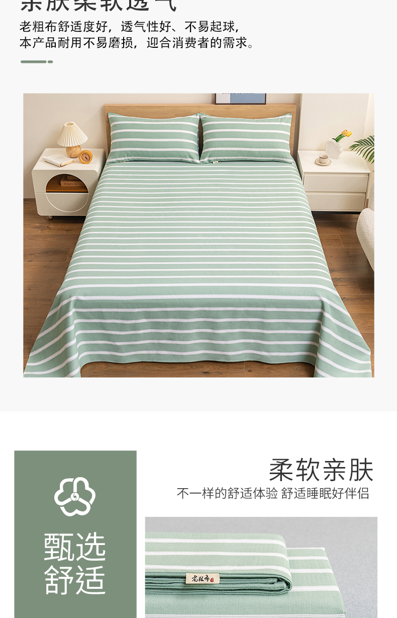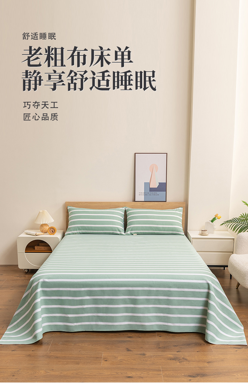 • 91家纺网 家纺一手货源 找家纺 居美良品 2026新款无印风正宗加厚老粗布床单单件枕套三件套可做凉席 雅致-绿