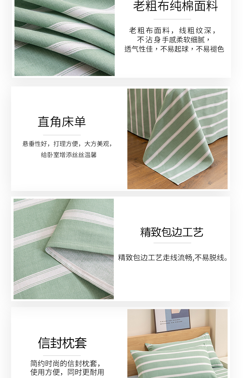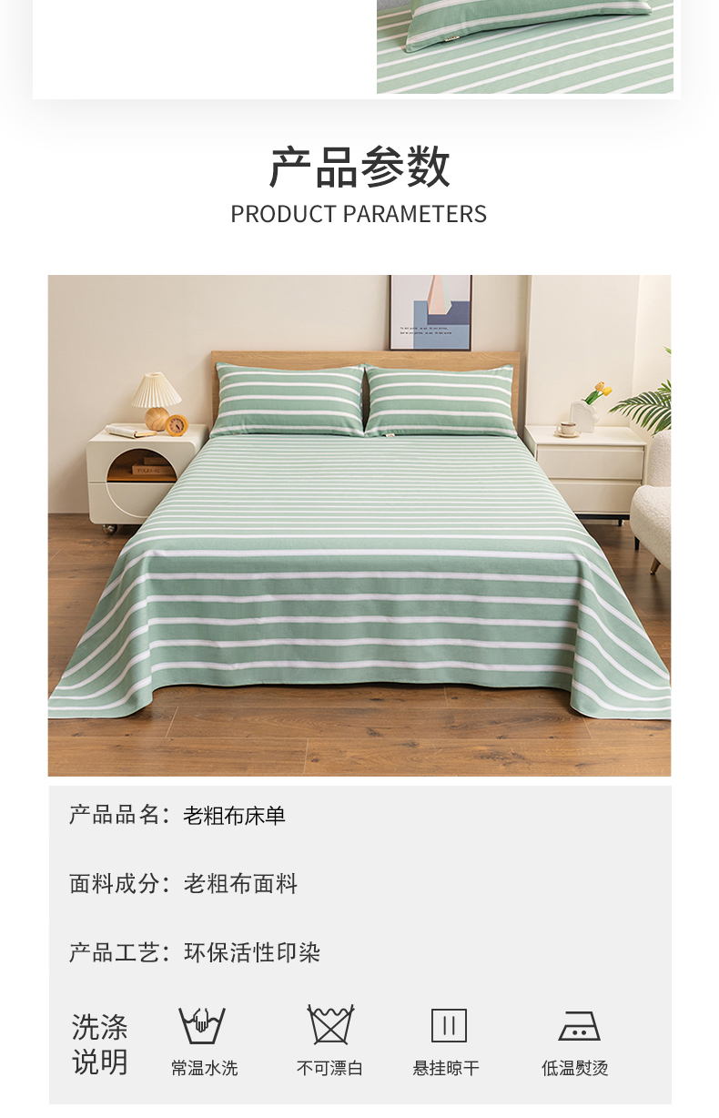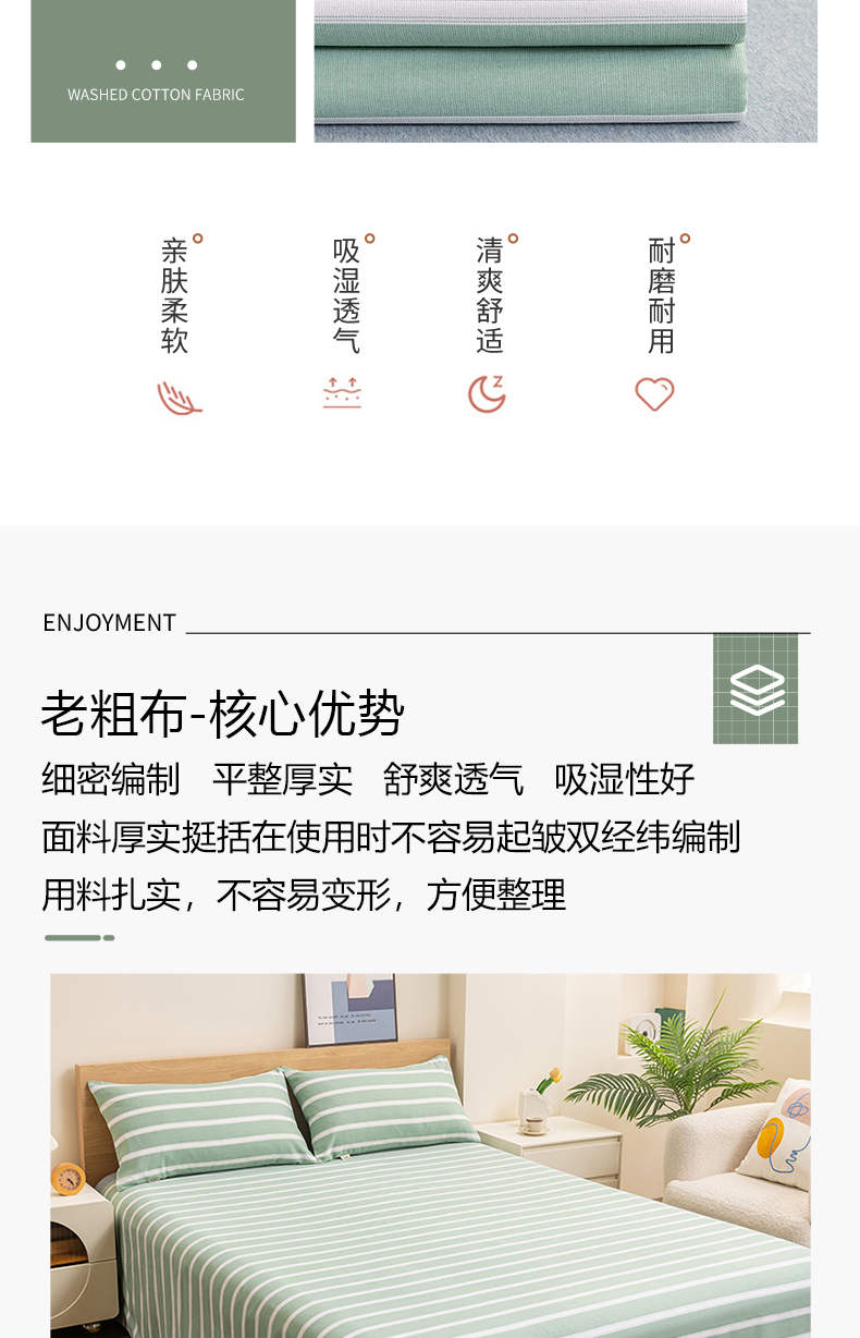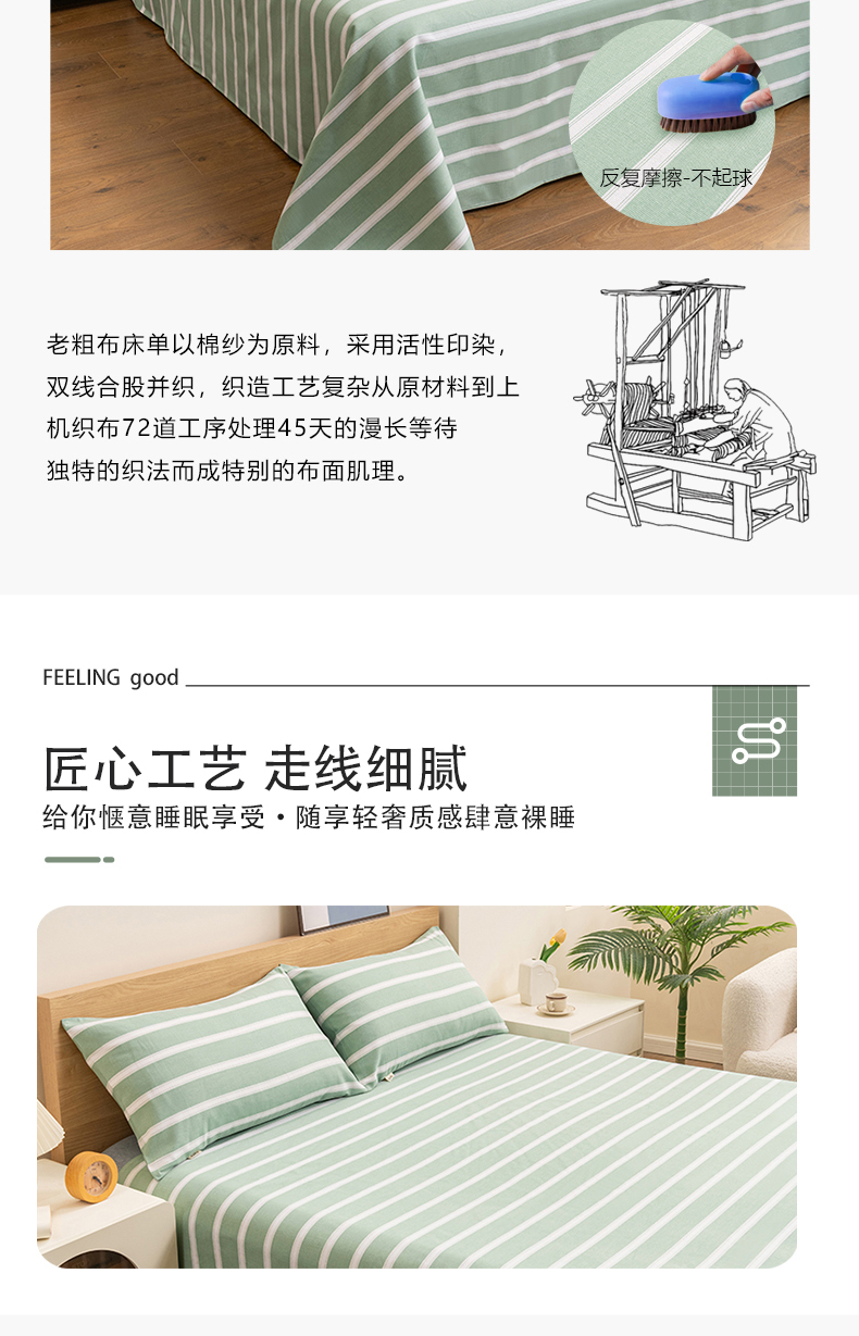 • 91家纺网 家纺一手货源 找家纺 居美良品 2026新款无印风正宗加厚老粗布床单单件枕套三件套可做凉席 雅致-绿