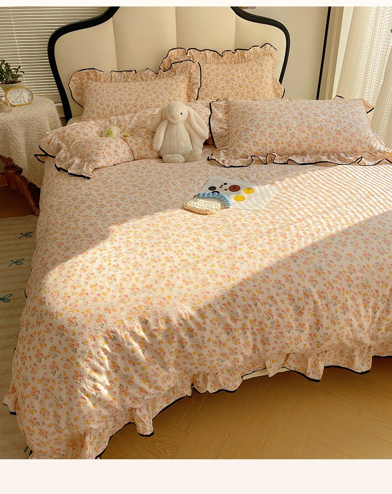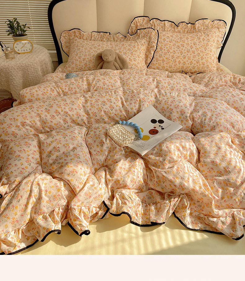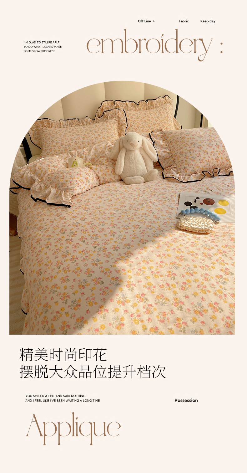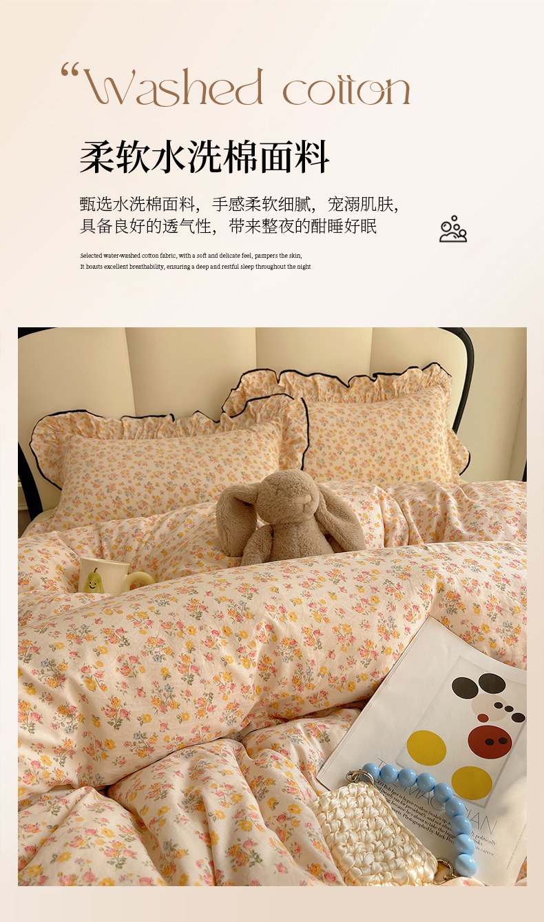 当前位置: 91家纺网 > 商品网购 > 床品套件 > 四件套 > 水洗棉四件套 > 韩巢家纺 2026新款水洗棉花边款四件套 久期诗朵-黄【大花边款】