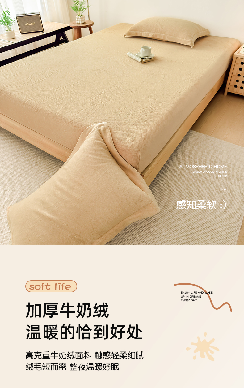 (总)金喜 支持定制2025新款200G牛奶绒纯色床笠,茶棕,艾绿,冰川灰,藏蓝,豆绿,豆沙,焦糖,卡其,奶芋白,葡萄紫,湘妃粉,星空灰,芋泥紫