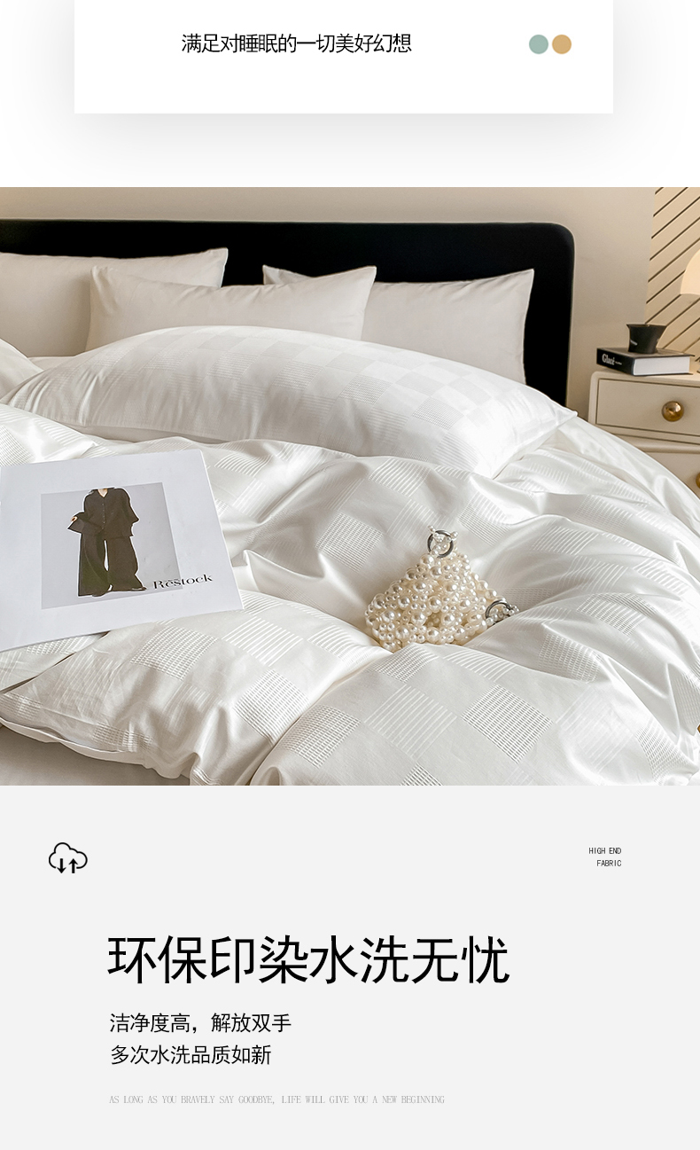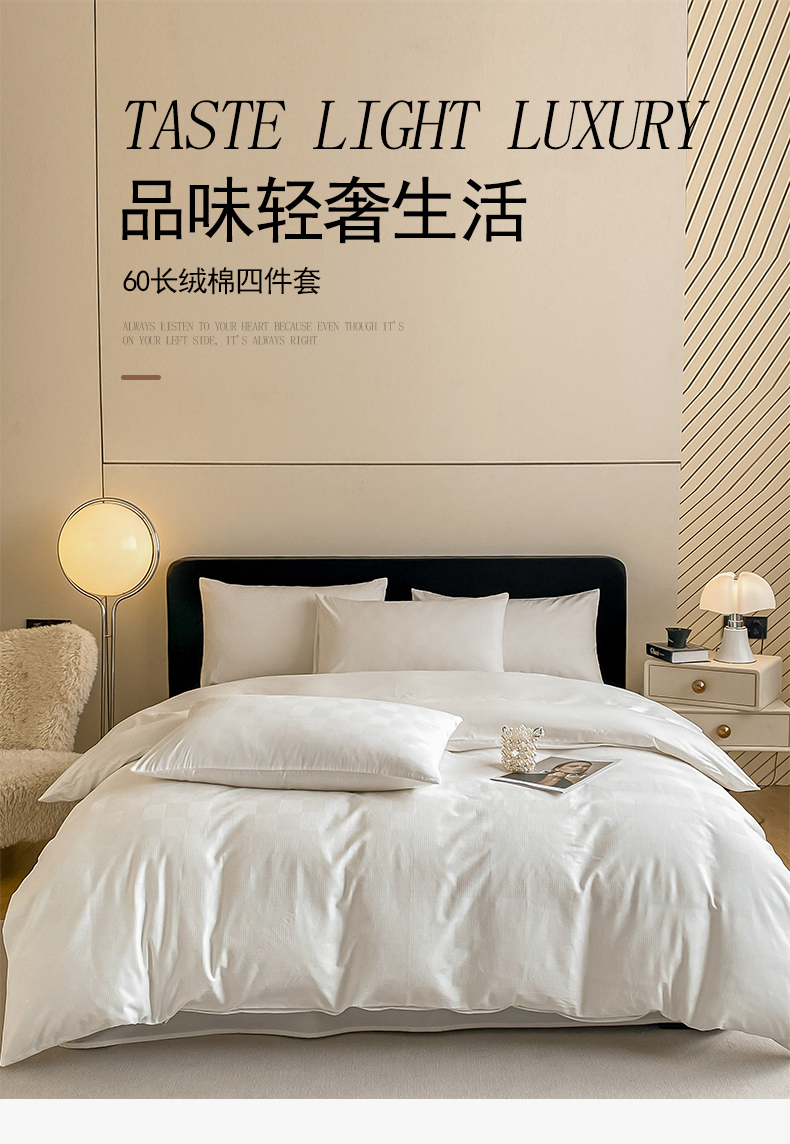 当前位置: 91家纺网 > 商品网购 > 床品套件 > 四件套 > 长绒棉四件套 > 琪格格纺织 2026新款轻奢长绒棉纯棉高级感提花方格酒店名宿居家四件套 原棉大提花-本白