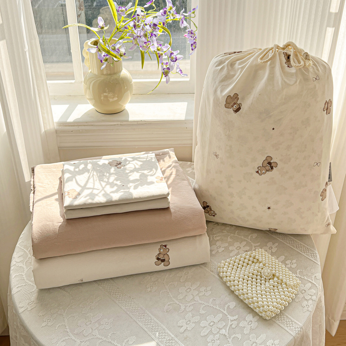 (总)梦莱斯 2025新款高克重云感棉四件套-花边款,赫拉,花盖绿,花盏灰,罗逸维绿,梦想熊,秋日记忆粉,若梦红,庭院春深,樱桃季,星星狗,灰调花笺,浅褐疏影,柔紫花绪,紫雾漫花
