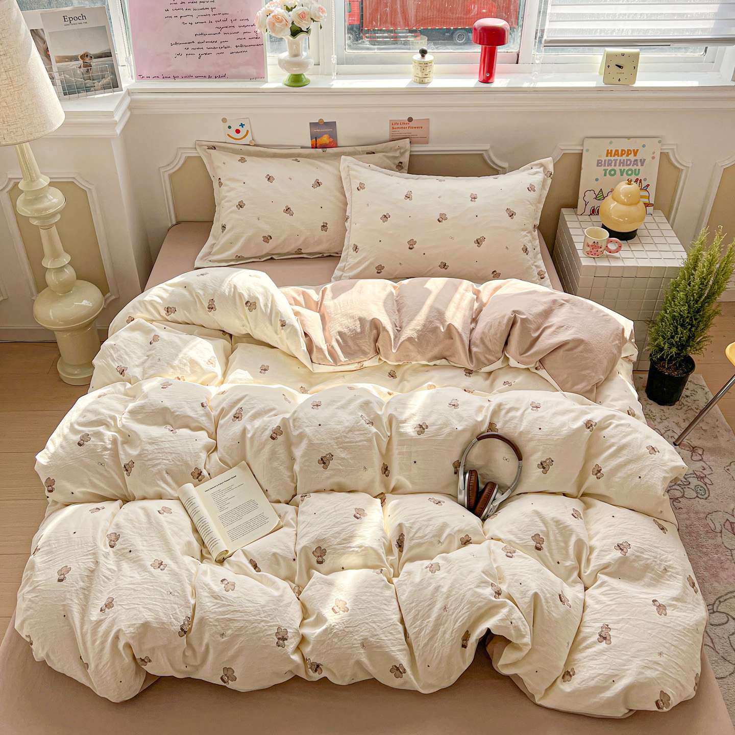 梦莱斯 2026新款A类古法水洗仿棉云感纱四件套 温暖熊