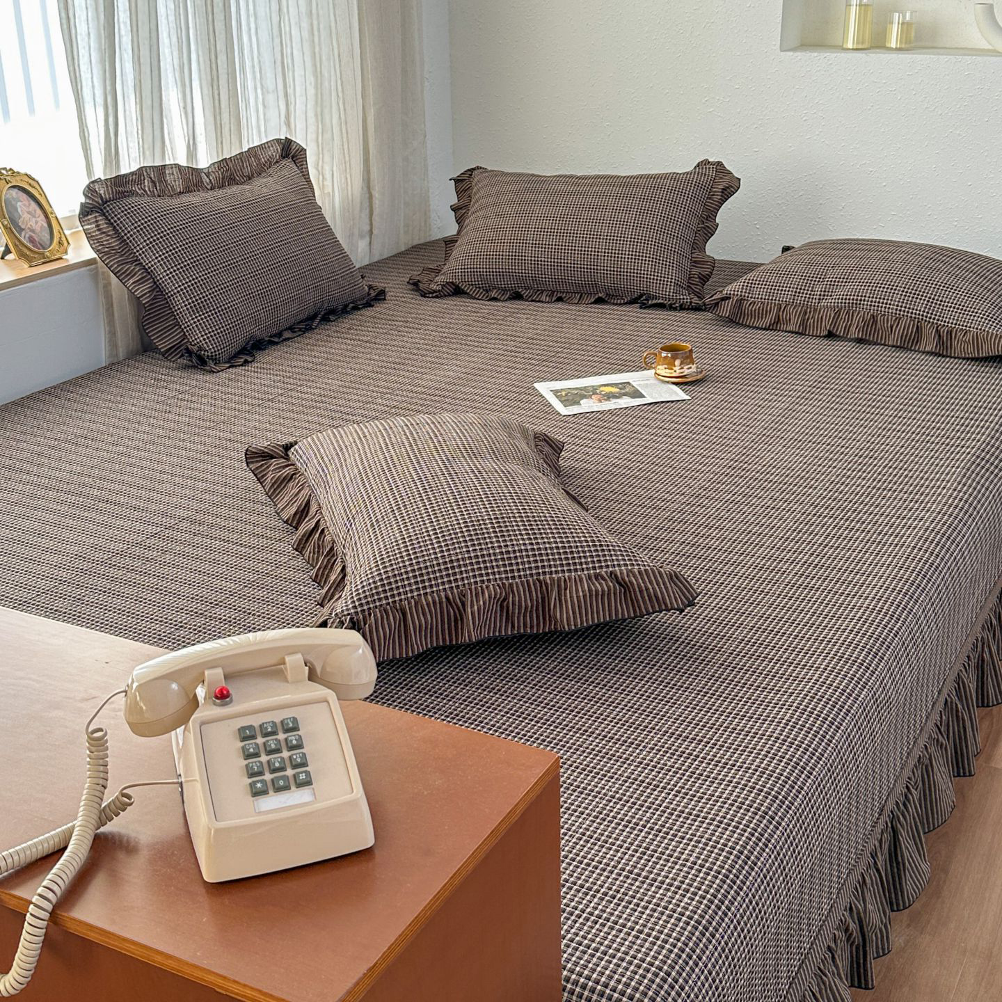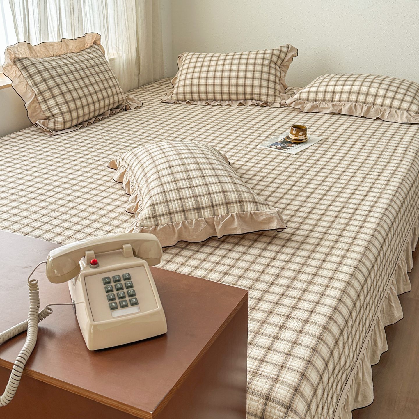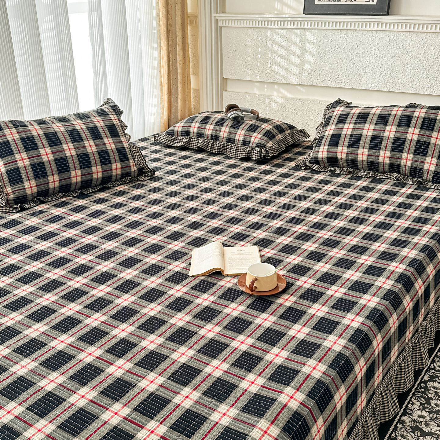 (总)暖居 2026新款全棉纯棉色织榻榻米三件套四件套单件大炕盖支持定制,黄小格,经典红咖格,经典咖小格,蓝格子,抹茶绿,紫色格子